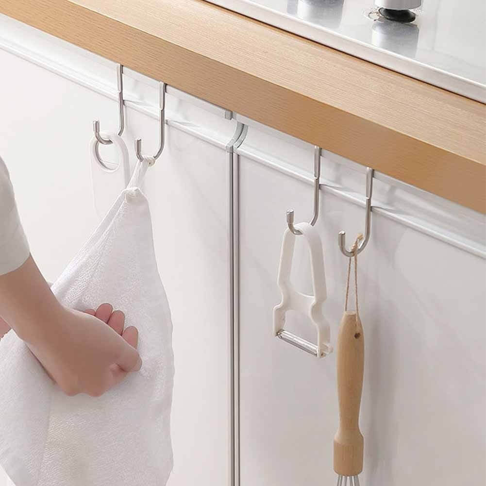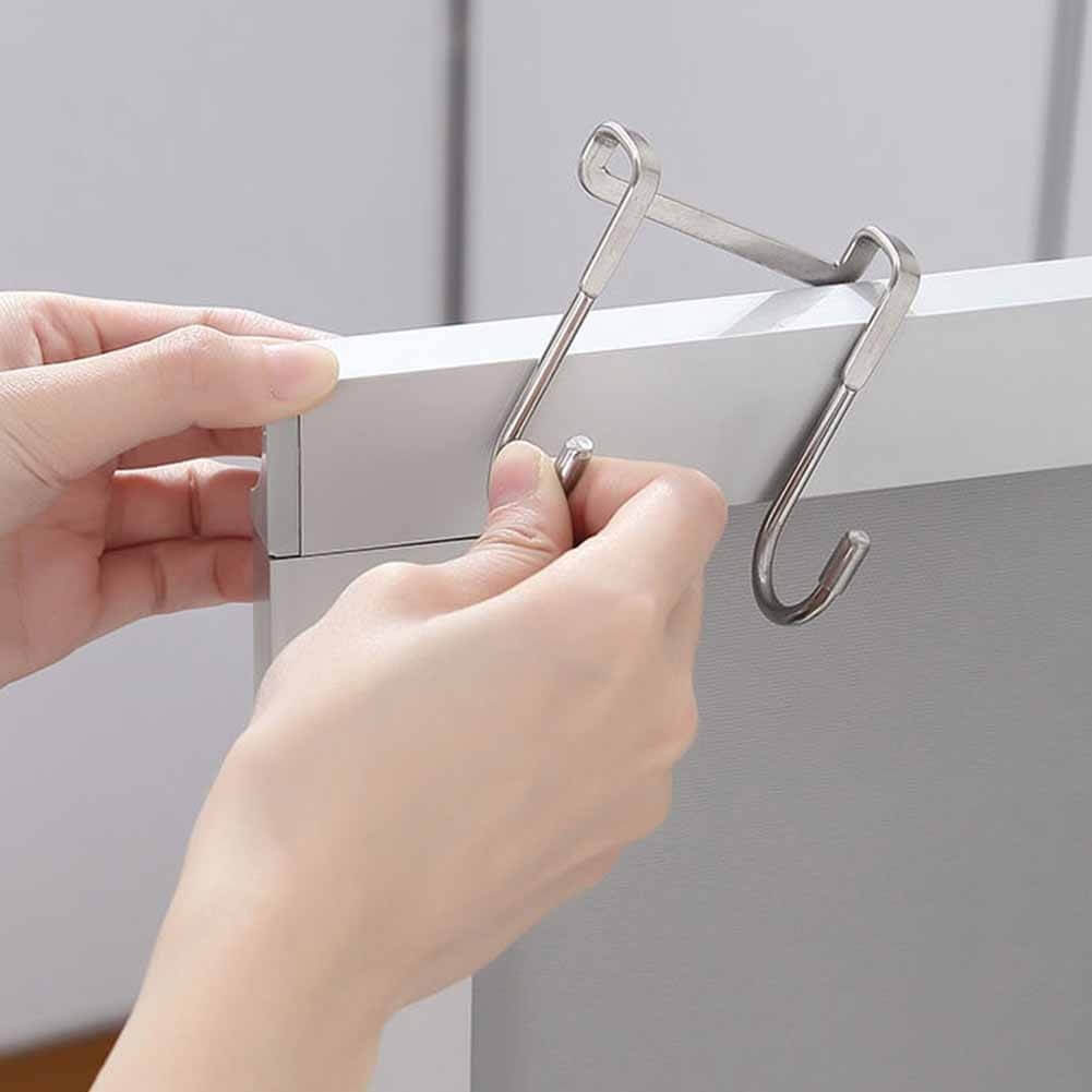 Patogūs kabliukai pakabinti ant durų krašto. Puikiai tinka kaip papildomos pakabos prie spintelės. Jų nereikia surinkti, tiesiog pakabinkite. Tinka visoms durims iki 2 cm storio.