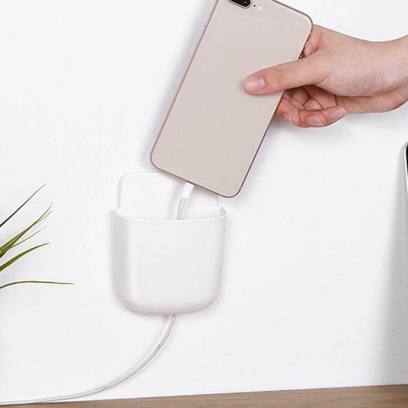 Universalus kabantis laikiklis, skirtas įkrauti telefoną. Paprastas ir patogus tvirtinimas prie sienos. Jis turi specialų lizdą, kuris palengvina kabelio prijungimą prie telefono įkrovimo lizdo. Aukšta konstrukcija neleidžia viduje esančiam prietaisui iškristi.