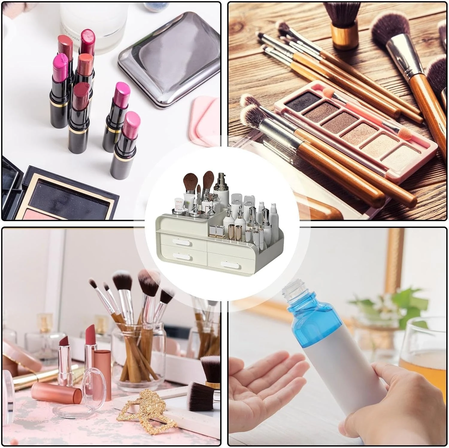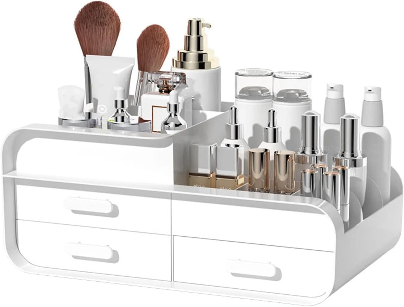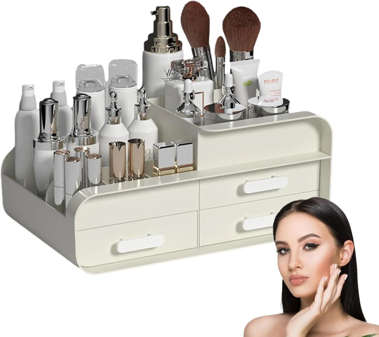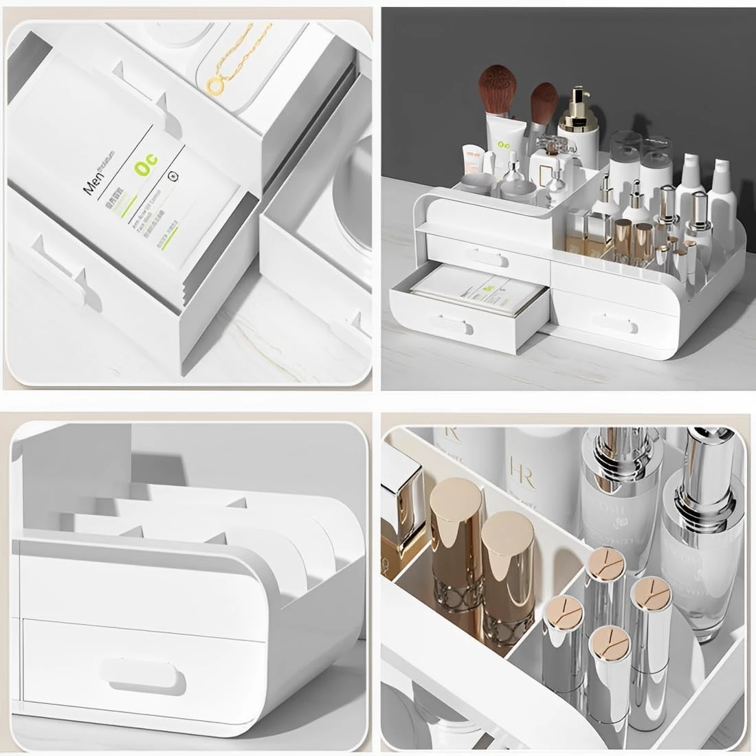 Sutvarkykite savo kosmetiką, papuošalus ir odos priežiūros priemones su šiuo stilingu ir funkcionaliu organizatoriumi. Daug vietos suteikiantis dizainas leis patogiai laikyti tiek aukštus buteliukus, tiek smulkius aksesuarus, o stalčiai padės paslėpti tai, ką norite laikyti neakivaizdžiai.