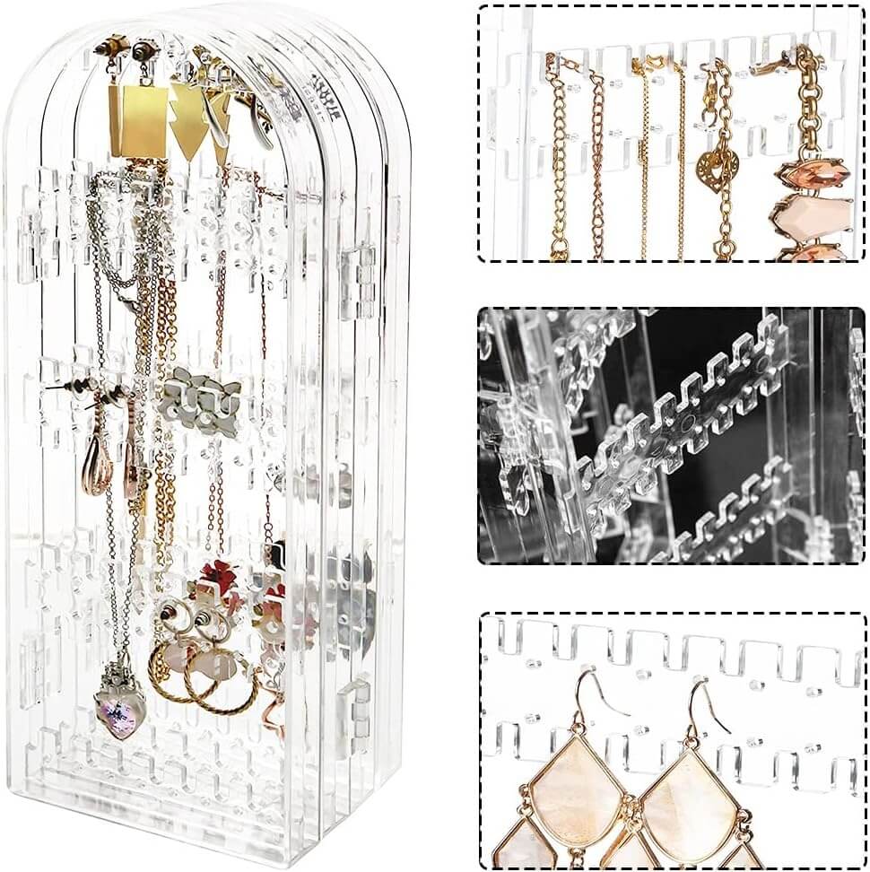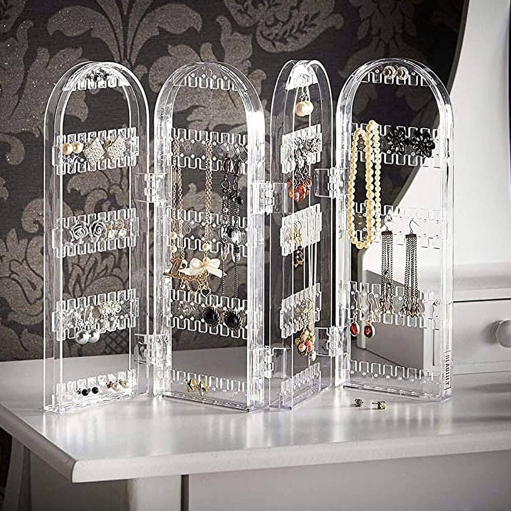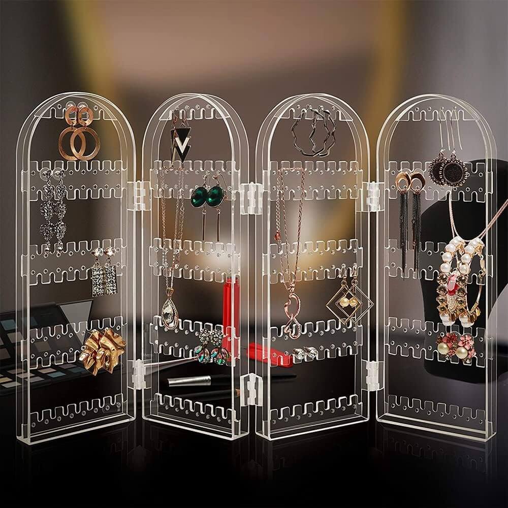Skaidrus lankstomas auskarų ir papuošalų stovas, 4 dalių