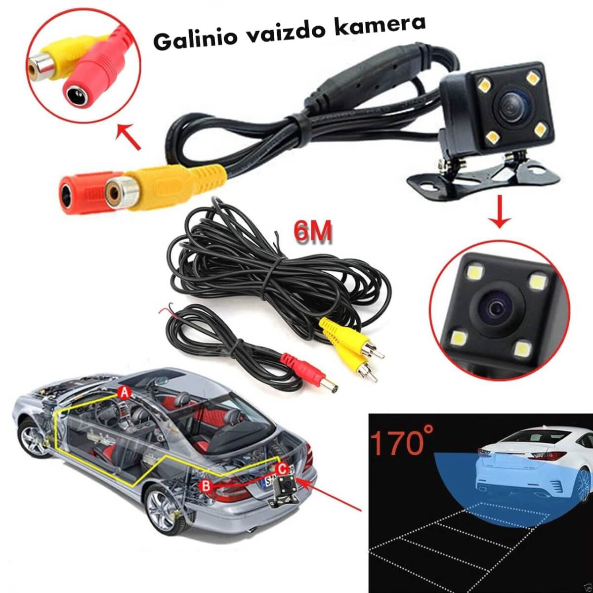 - Lengvas ir patogus montavimas. Kamera universali – tinka įmontuoti į bet kurį automobilį.