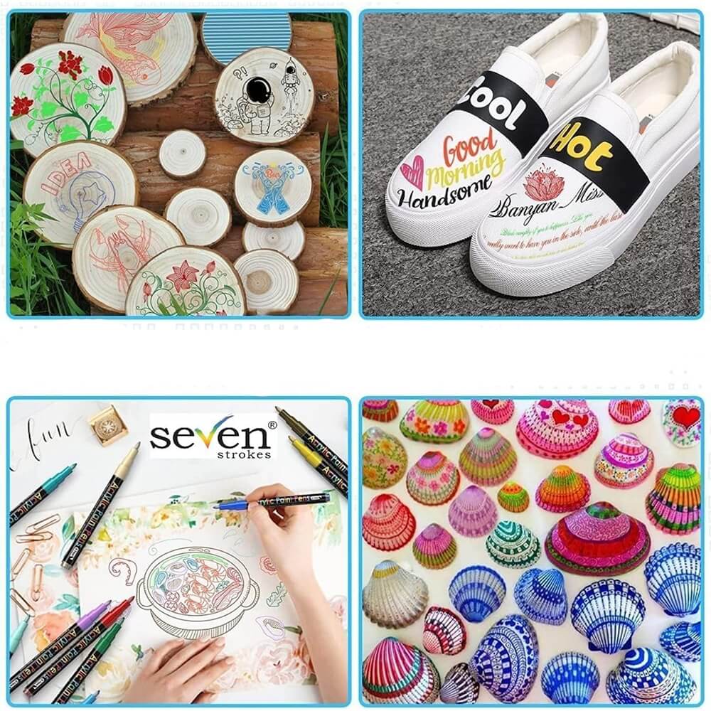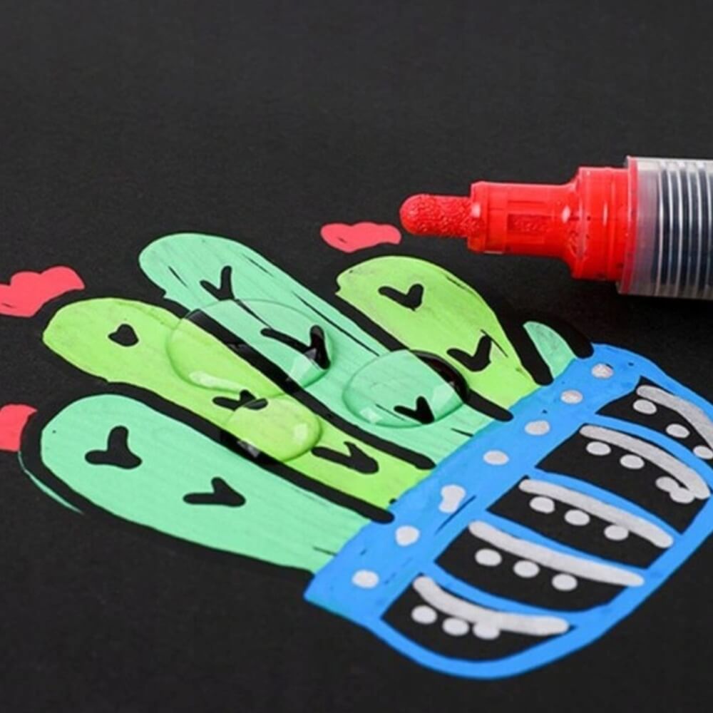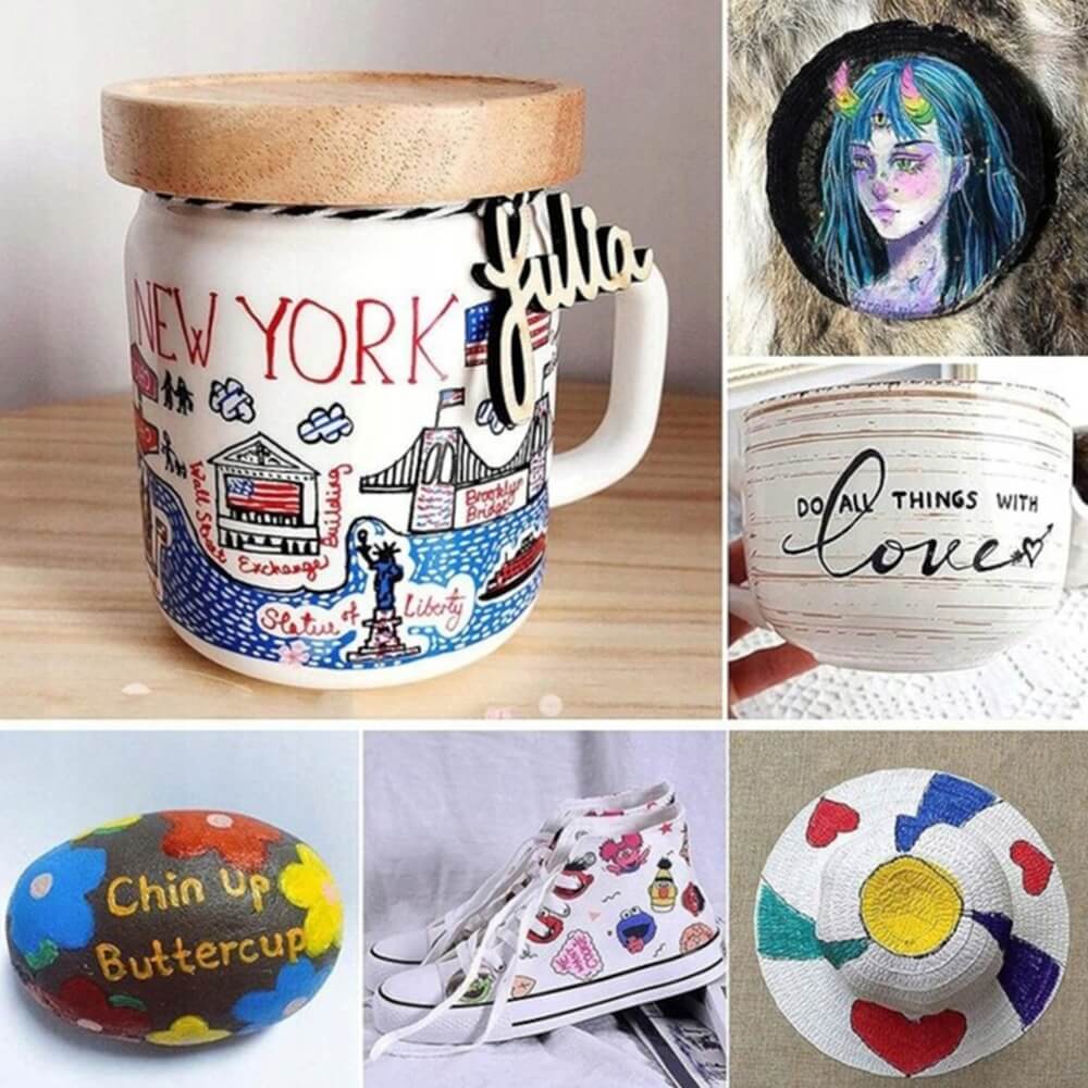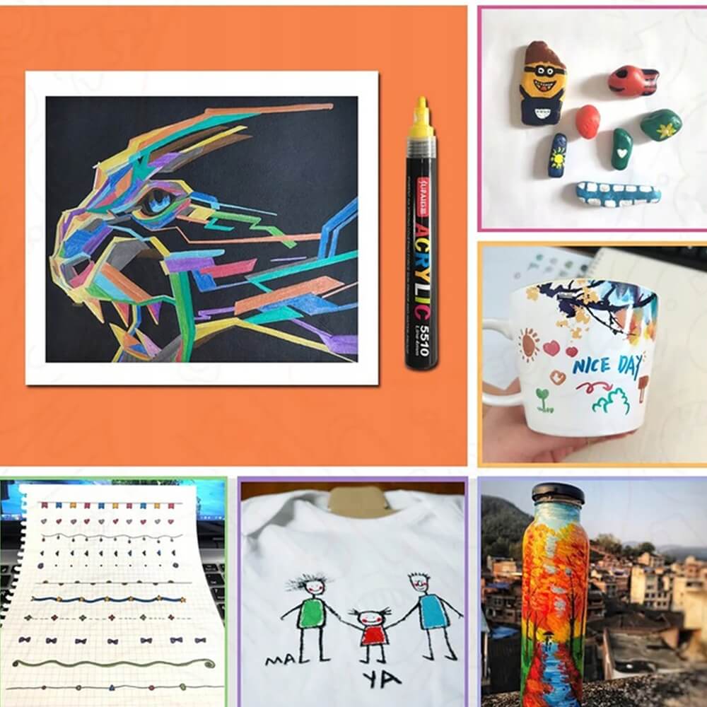 Atraskite neribotas kūrybos galimybes su šiuo 12 ryškių spalvų akrilinių flomasterių rinkiniu! Tinka piešimui ant įvairių paviršių: akmenų, puodelių, batų, medžio, stiklo, plastiko, drobės, popieriaus ir dar daugiau. Itin pigmentuoti dažai sukuria sodrias, nepermatomas linijas, kurios greitai džiūsta ir yra atsparios vandeniui bei saulės poveikiui.