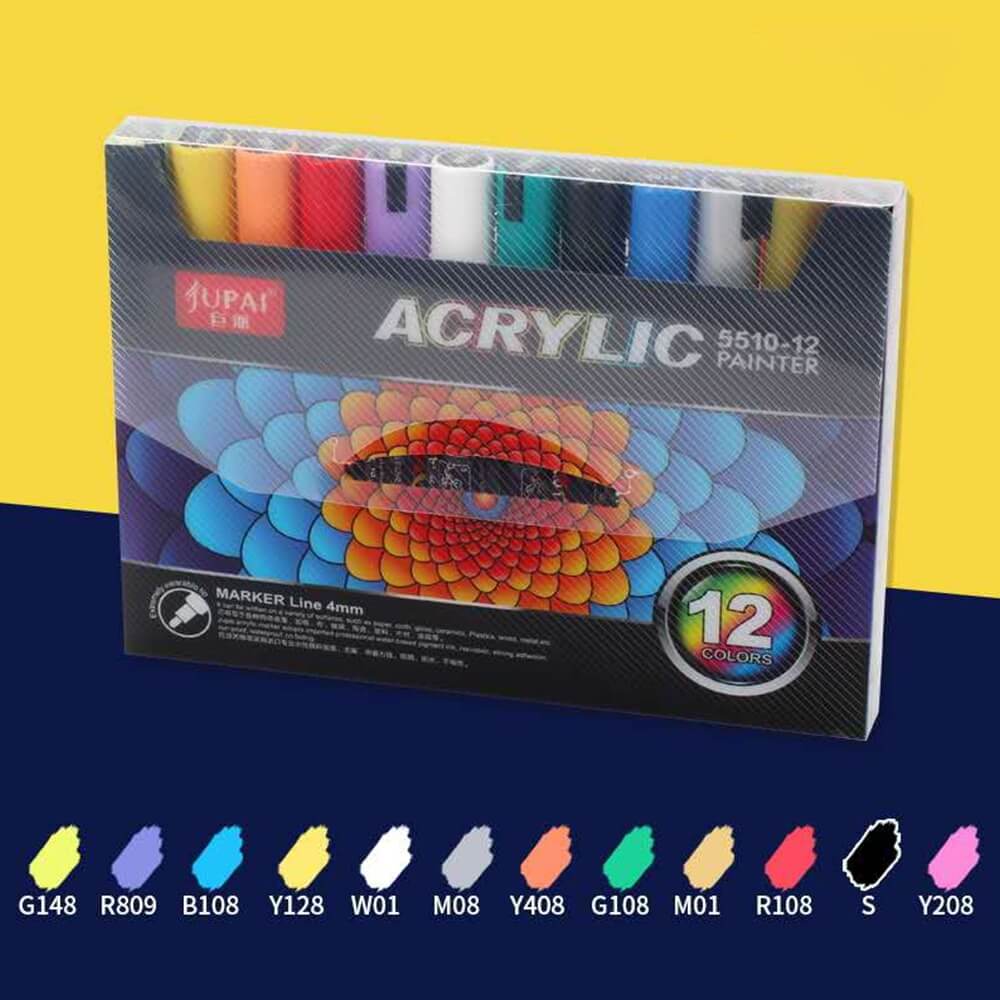 Akriliniai flomasteriai „UPAI“ – 12 spalvų rinkinys, 4 mm