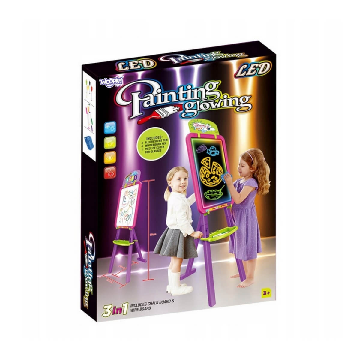 3-in-1 magnetinė piešimo lenta vaikams (3+) – magnetinė, sauso trynimo ir šviečianti