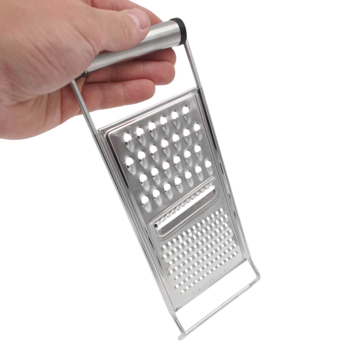 Ši praktiška dvipusė tarka pagaminta iš aukštos kokybės nerūdijančio plieno, todėl yra itin patvari, atspari korozijai ir lengvai valoma. Įrankis turi dvi skirtingas trynimo puses – stambesnę ir smulkesnę, todėl tinka įvairiems produktams: daržovėms, vaisiams, sūriui, šokoladui ar net bulvėms.