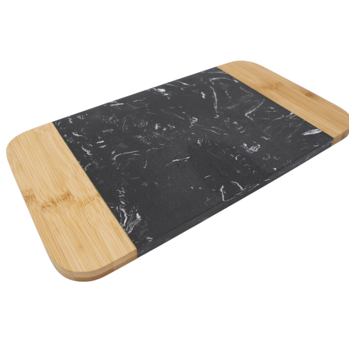 Marmurinis serviravimo padėklas su bambuko kraštais, 30 x 16 cm