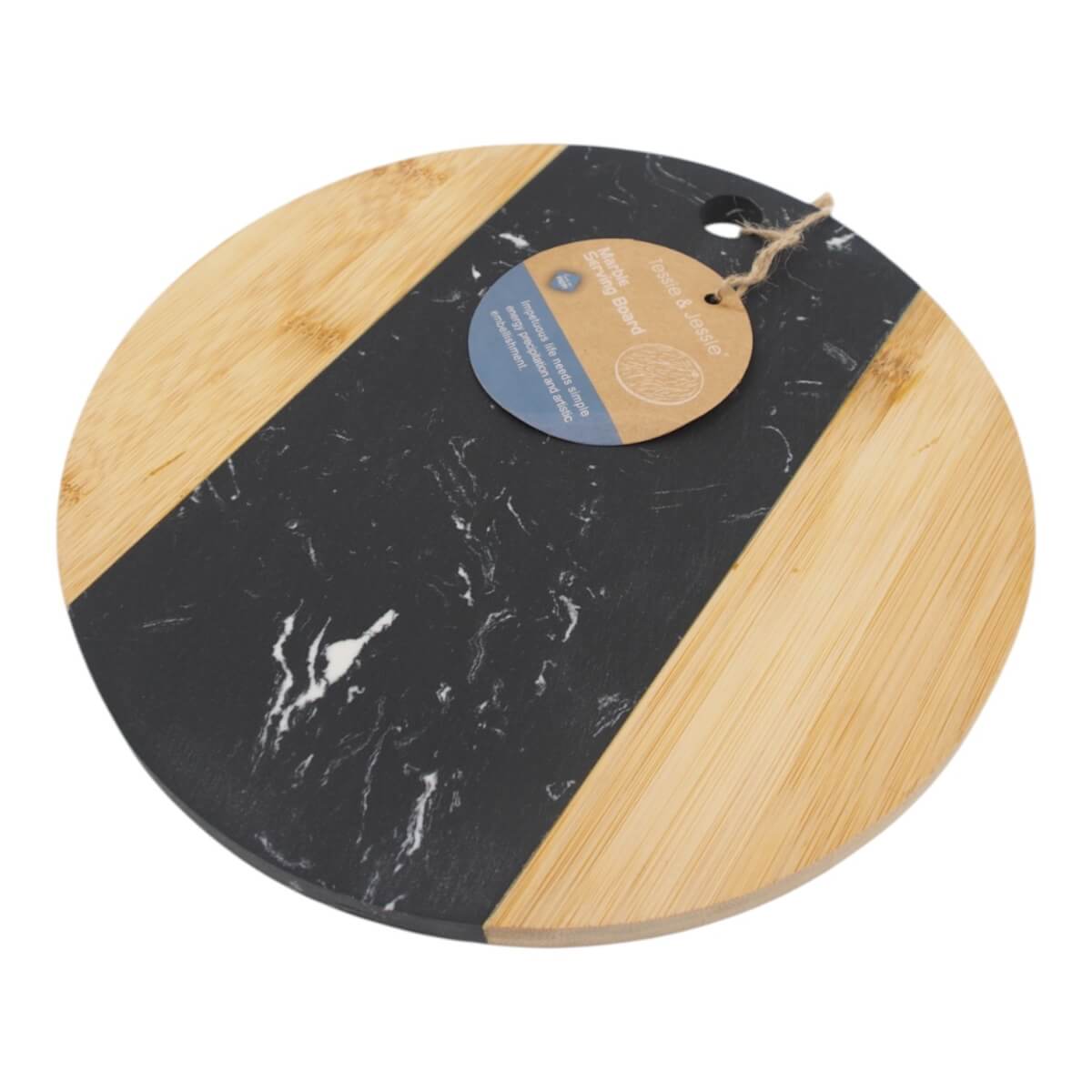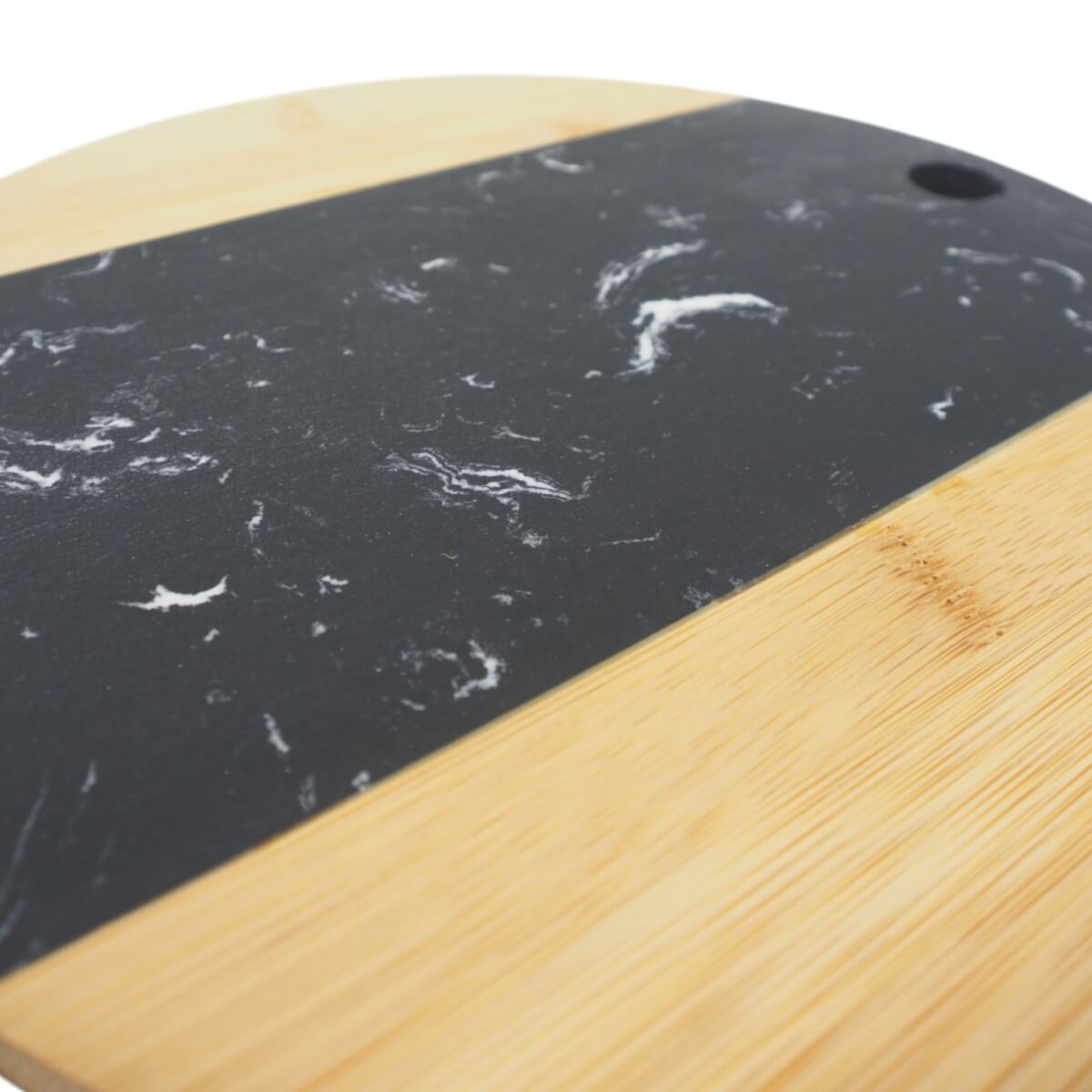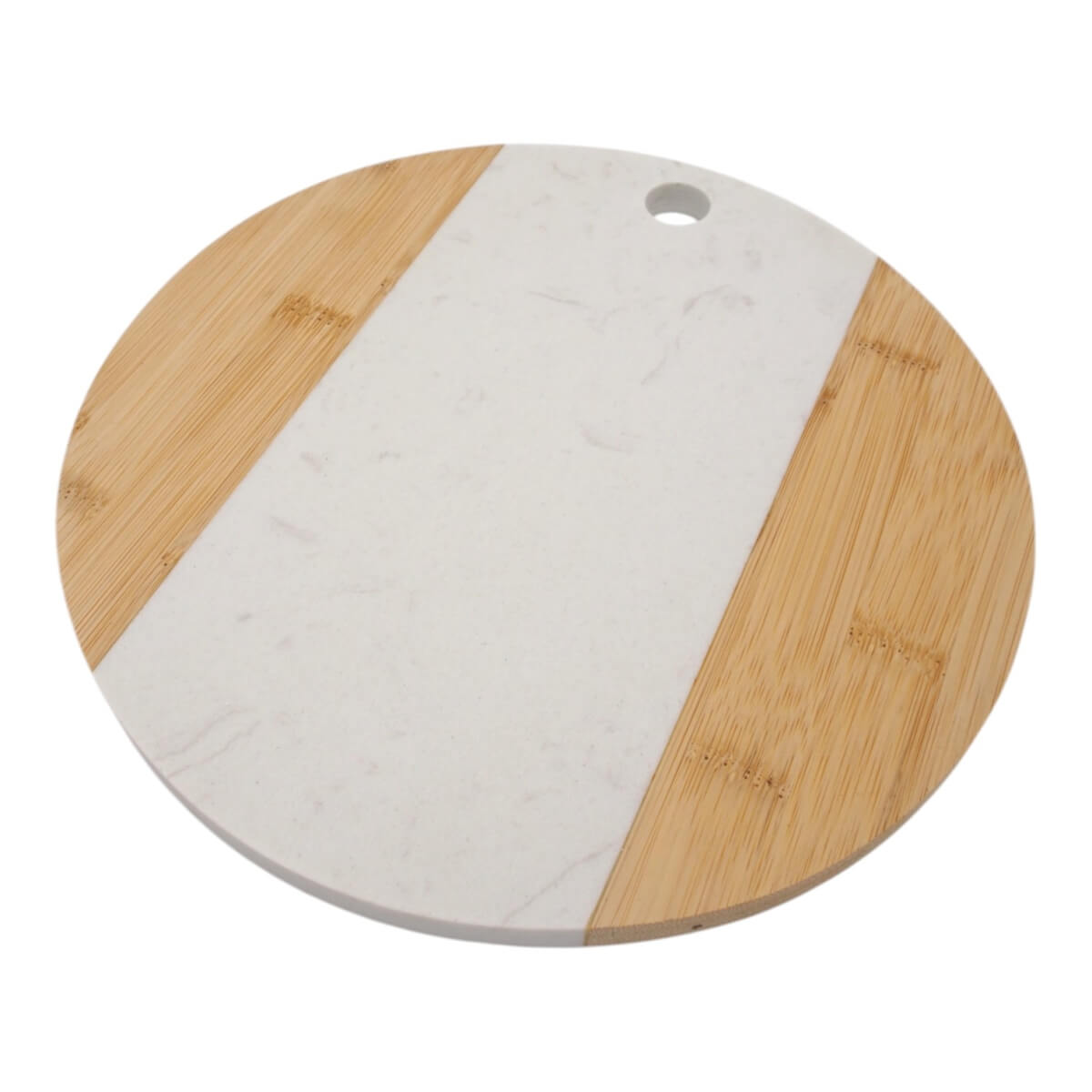 Apvalus marmurinis serviravimo padėklas su bambuko detalėmis, Ø 25 cm