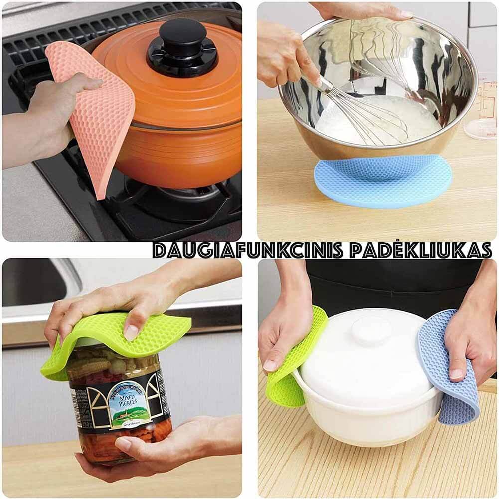 - Daugiafunkcis panaudojimas: naudojami ne tik lengvai atidarant stiklainius ir butelius, bet ir gali būti naudojami kaip apvalūs virtuvės padėkliukai.