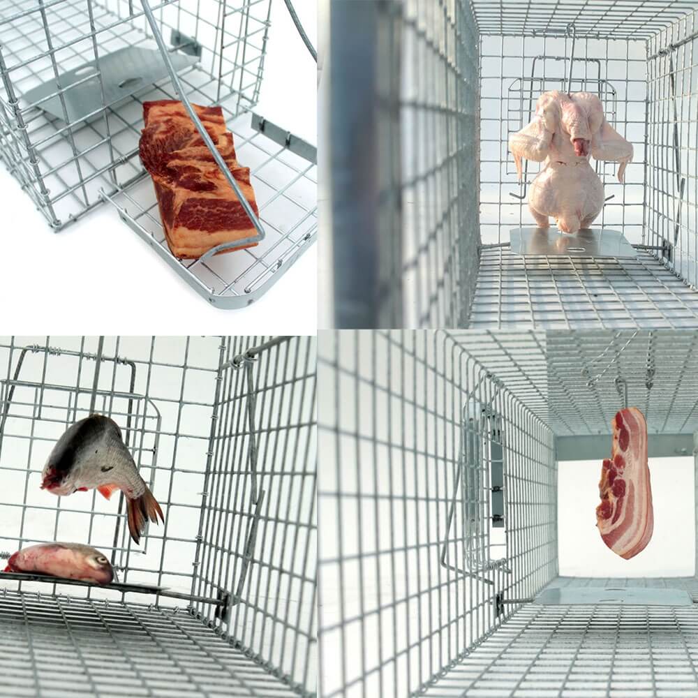 - Visos gaudyklės turi tikrinimo dureles masalui šerti – visos jos itin tvirtos su labai tvirtu plieniniu spaustuku ir užsegama sagtimi iš storos vielos.