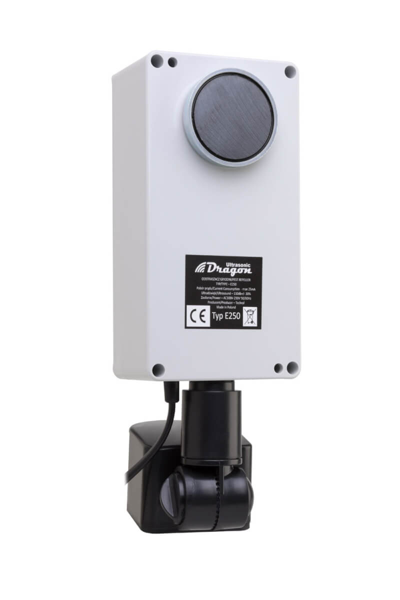 - – Prietaisą lengva įdiegti, nes tik „Dragon Ultrasonic“ prietaisai pirmą kartą naudoja magnetinį laikiklį. Su šiuo laikikliu galite lengvai, greitai ir saugiai pritvirtinti repelerį prie metalinio paviršiaus. Pakanka metalo paviršiaus gabalo, pvz., Vamzdžio, turėklo, latako, metalinės palangės, knygų spintos, stogo konstrukcijos, šildytuvo.