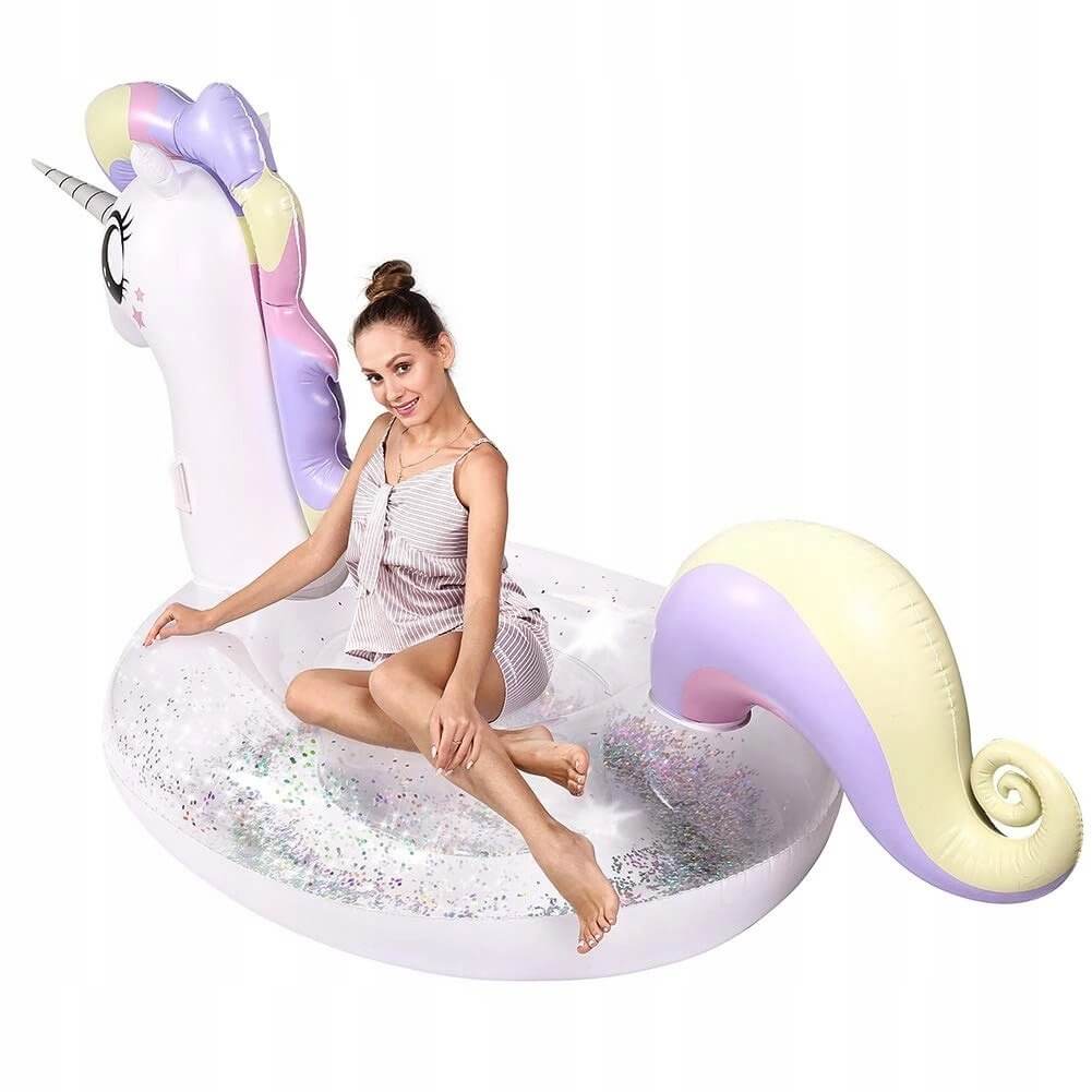 Įspūdingo dydžio XXL pripučiamas vienaragio plaustas – tikras vasaros hitas baseinui, ežerui ar atostogoms prie jūros. Daili spalva ir blizgučiai viduje suteikia išskirtinį efektą, o didelis dydis leidžia patogiai plūduriuoti ir ilsėtis.