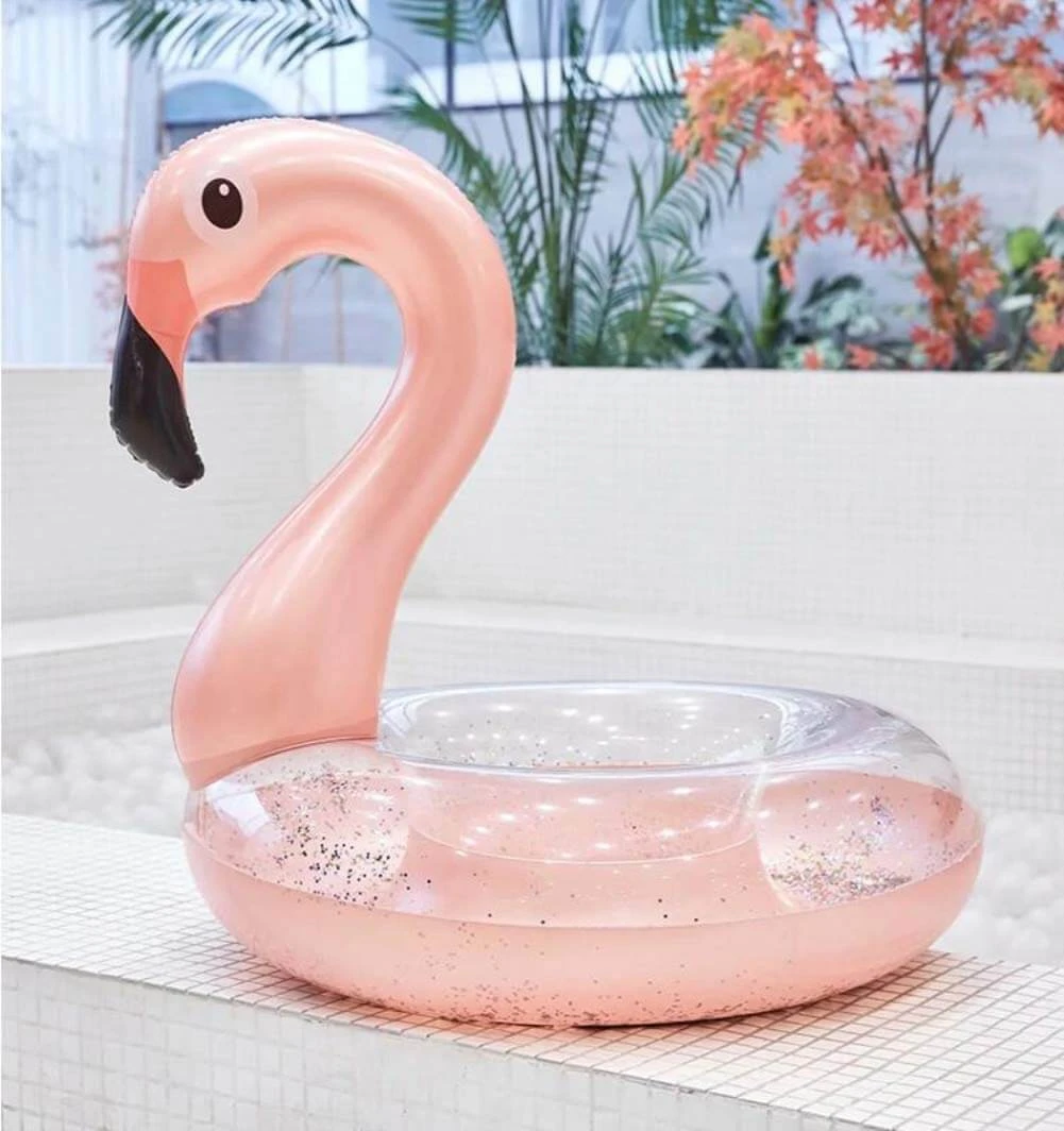 Stilingas ir akį traukiantis pripučiamas flamingo formos plaukimo ratas su blizgučiais viduje – puikus pasirinkimas baseinui, ežerui ar atostogoms prie jūros. Didelis skersmuo suteikia daugiau komforto, o blizgučiai sukuria žaismingą, vasarišką įvaizdį.