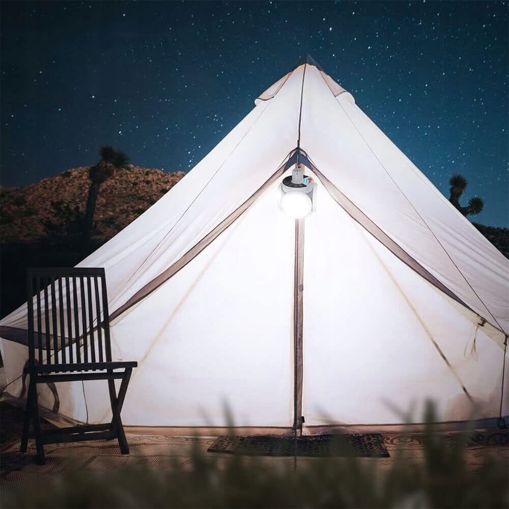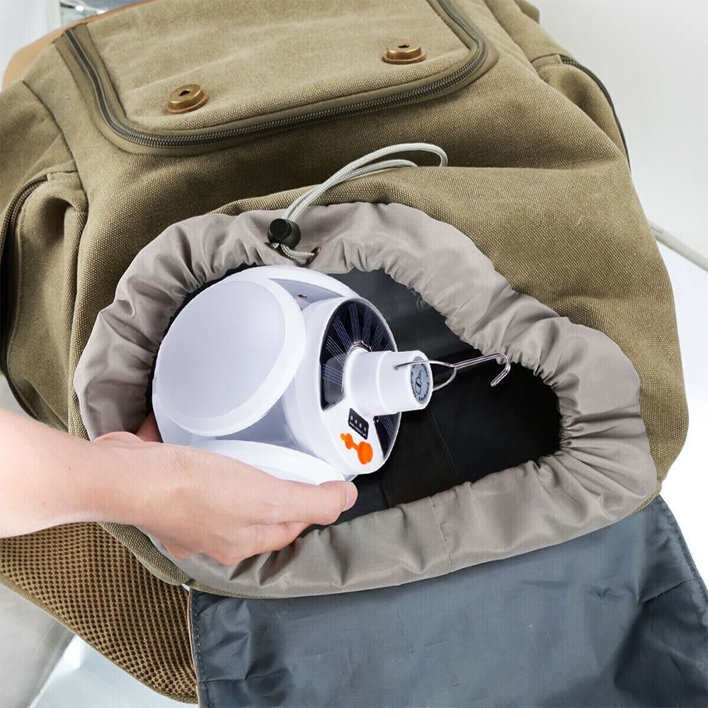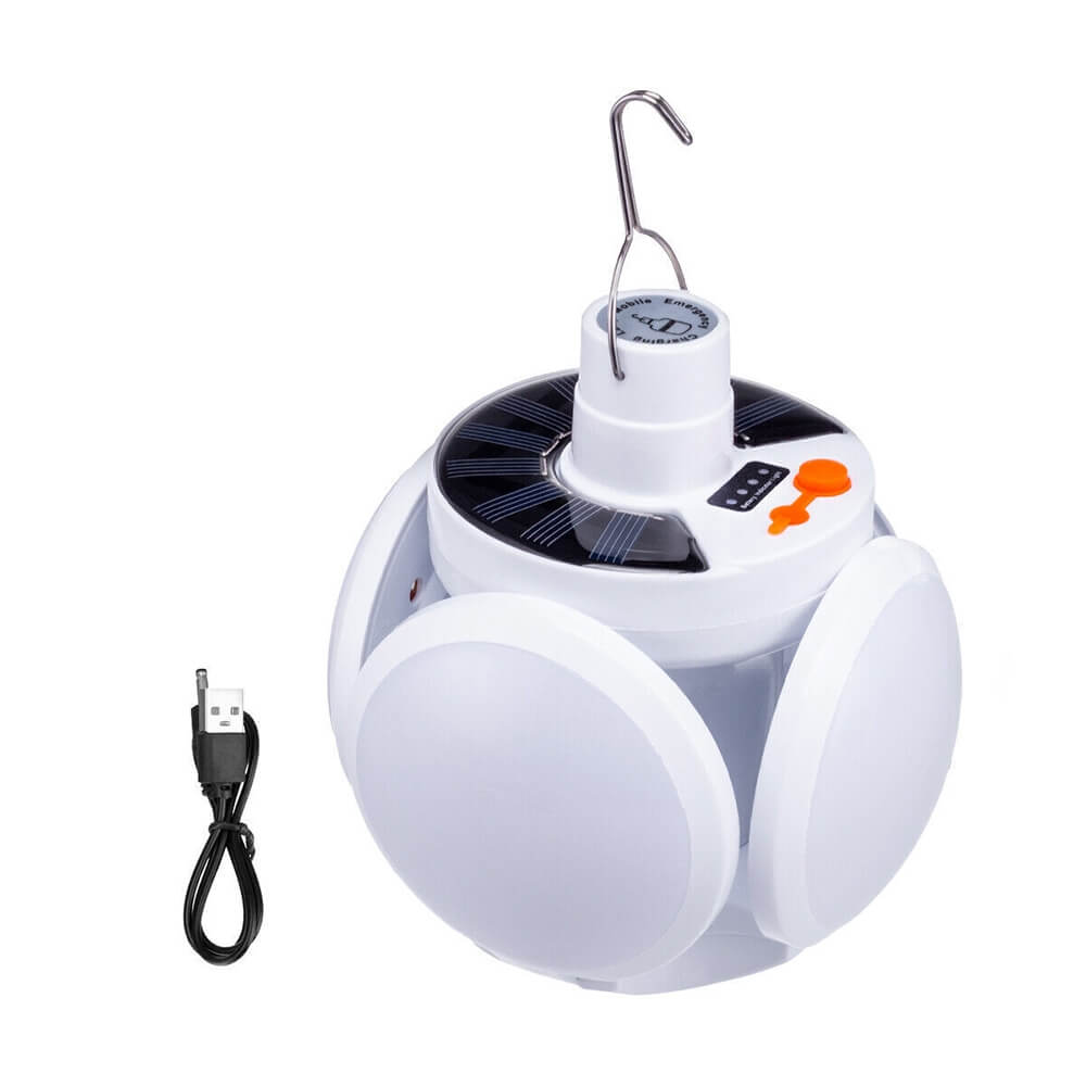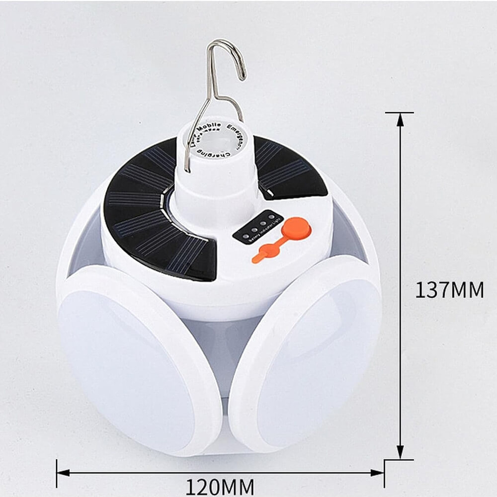 Kempingo šviestuvas, maitinamas iš įmontuotos baterijos ir saulės kolektoriaus. Galima pakabinti palapinėje (įmontuota rankena). Naudojant LED diodus, tai yra stiprus šviesos šaltinis. Lempa atspari dulkėms, smūgiams ir vandens purslams (IP65), puikiai tiks naudoti lauke. Šviestuvas turi keletą apšvietimo režimų ir šviesos galios reguliavimą. Integruotas USB prievadas leidžia įkrauti papildomus įrenginius (pvz., Telefoną). Galima naudoti kaip „Powerbank” šorinę bateriją.