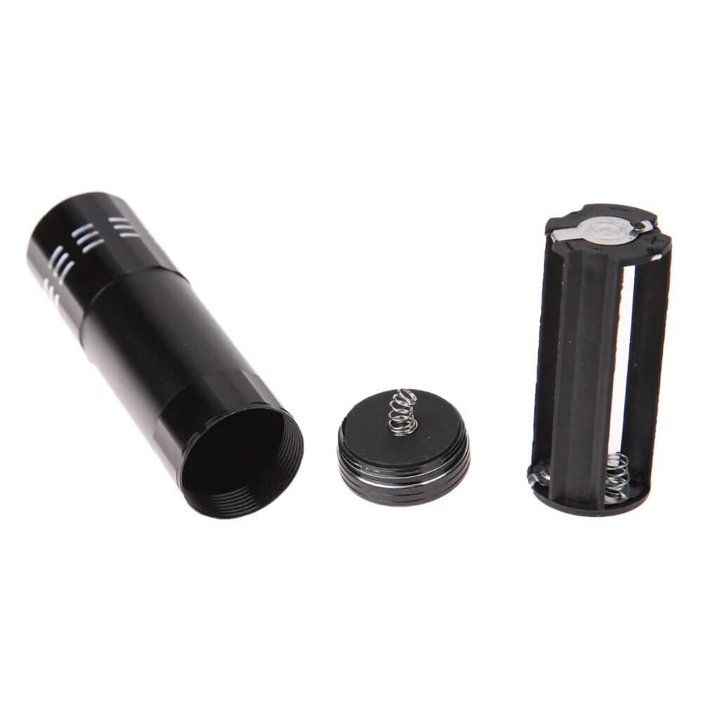 Kompaktiškas UV žibintuvėlis su 9 LED diodais, skirtas įvairiems patikrinimams namuose ar darbe. Tinka banknotų ir dokumentų apsaugos ženklams, kortelėms, dėmėms ar įskilimams tikrinti. Tvirtas aliuminio korpusas užtikrina ilgaamžiškumą, o 365 nm UV bangos ilgis suteikia ryškų UV apšvietimą.