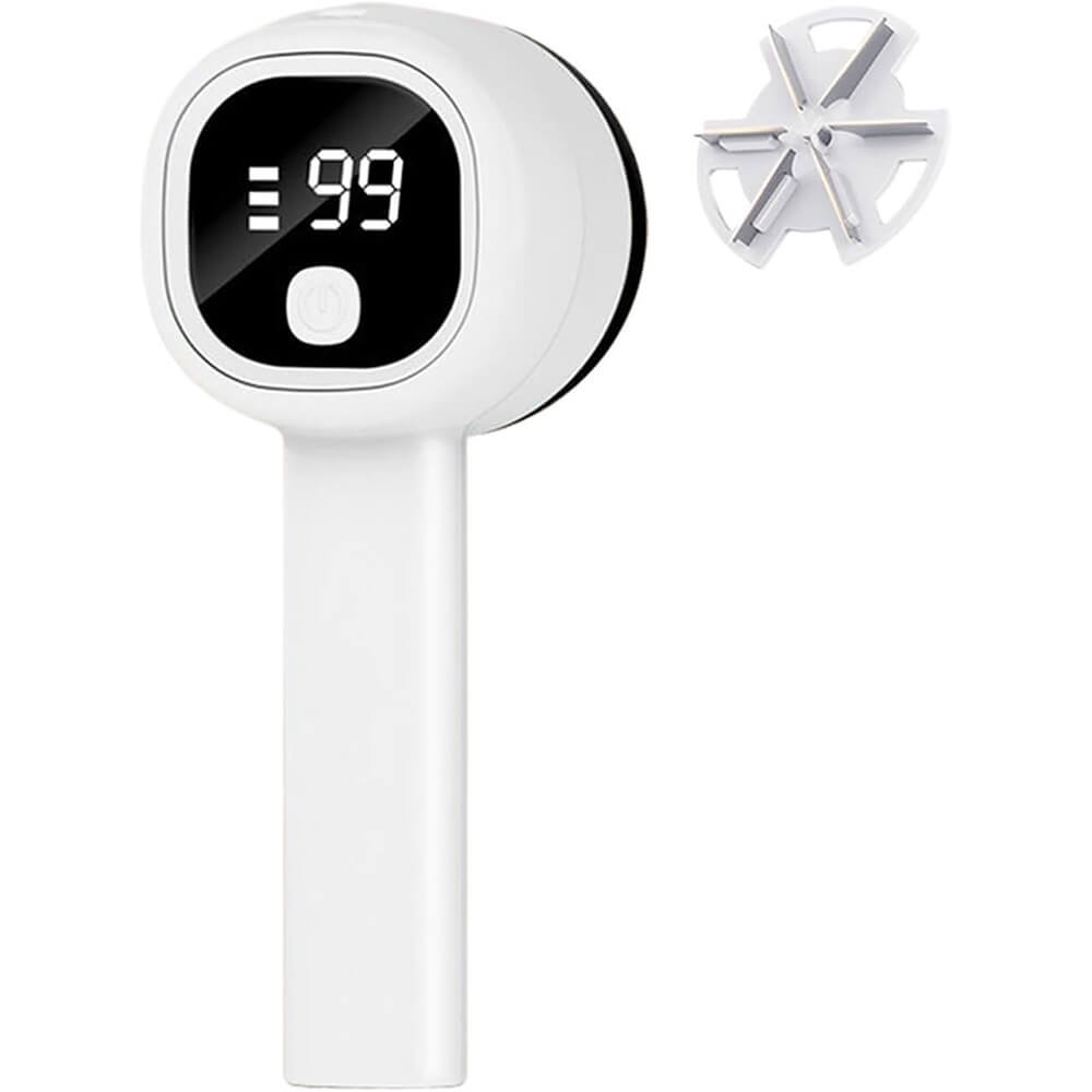 Įrenginys turi skaitmeninį ekraną, kuris rodo baterijos įkrovos lygį, o įmontuotas talpus pūkelių konteineris yra lengvai ištuštinamas. Prietaisas įkraunamas per USB, todėl yra patogus naudoti tiek namuose, tiek kelionėse.
