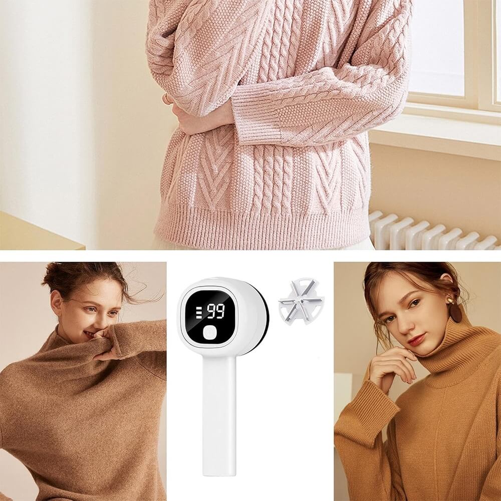 Atsinaujinkite savo garderobą vos per kelias minutes! Tai modernus elektrinis drabužių pūkų surinkėjas, padedantis pašalinti susidariusias pūkelių, veltinio ar siūlų gumulėlių sankaupas nuo megztinių, paltų, kelnių, pledų ir kitų audinių. Prietaisas grąžina rūbams tvarkingą, prižiūrėtą išvaizdą.