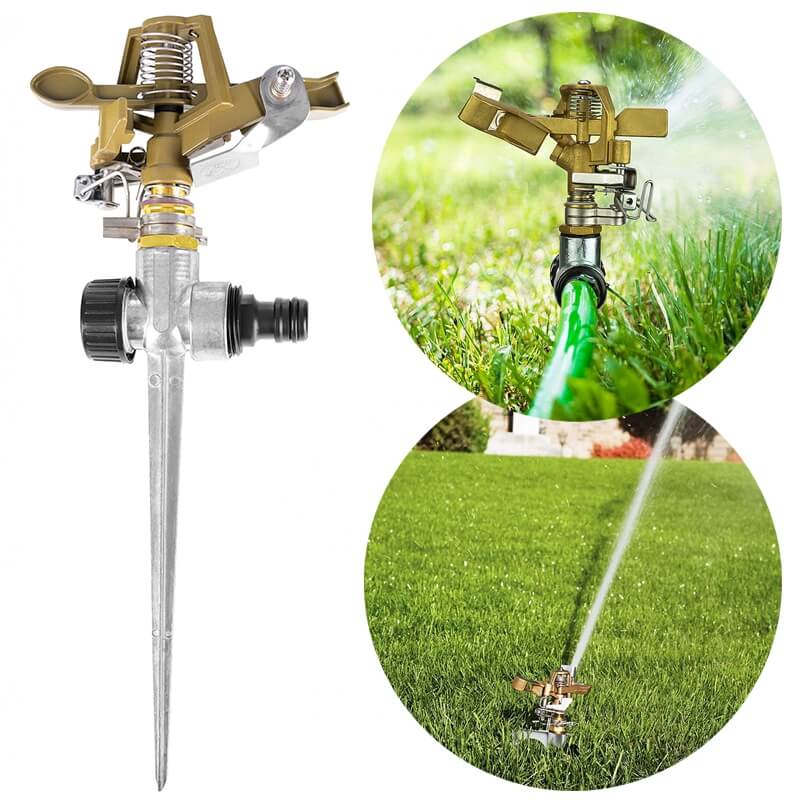 Impulsinis sodo purkštuvas pagamintas iš patvaraus metalo lydinio ir aukščiausios kokybės plastiko. Tai nepakeičiamas sodo elementas – niekada nesirūpinsite laistydami veją, daržą ir pan. Purkštuvas nesudaro balų – jis tolygiai laisto visą sklypo plotą.