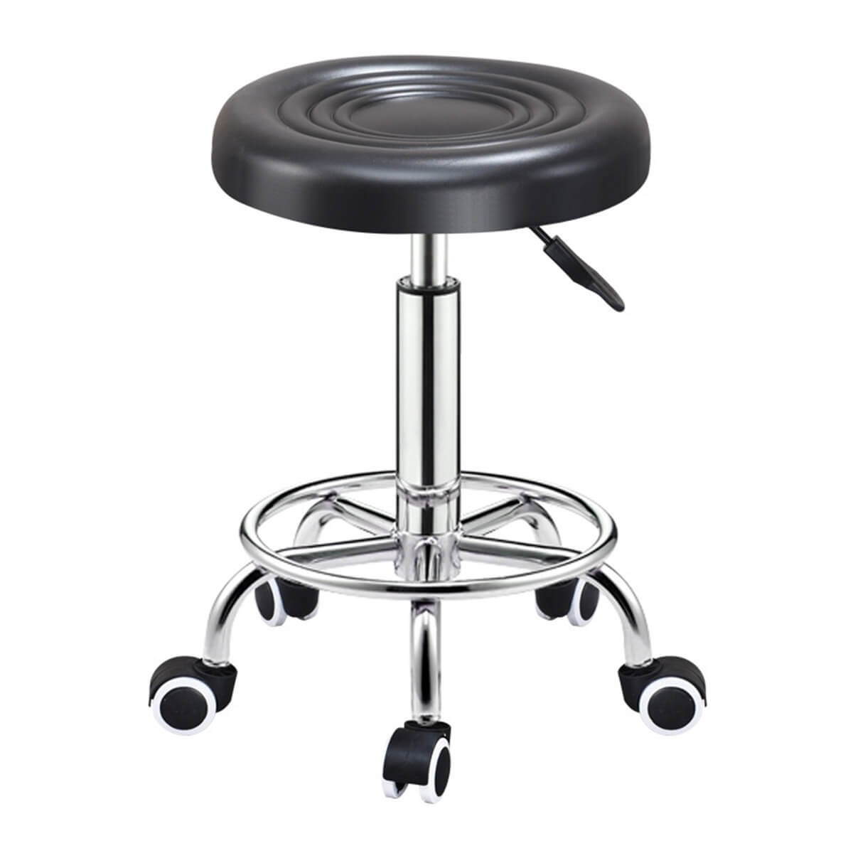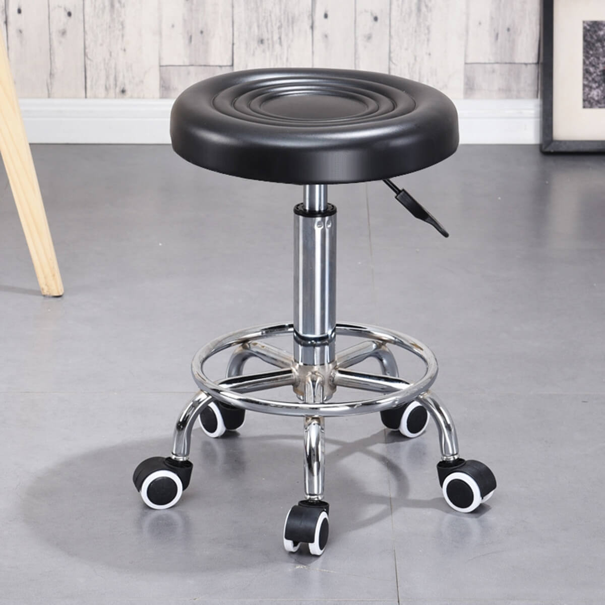 - Kėdė montuojama ant kieto pagrindo su 5 visiškai besisukančiais ratais.
