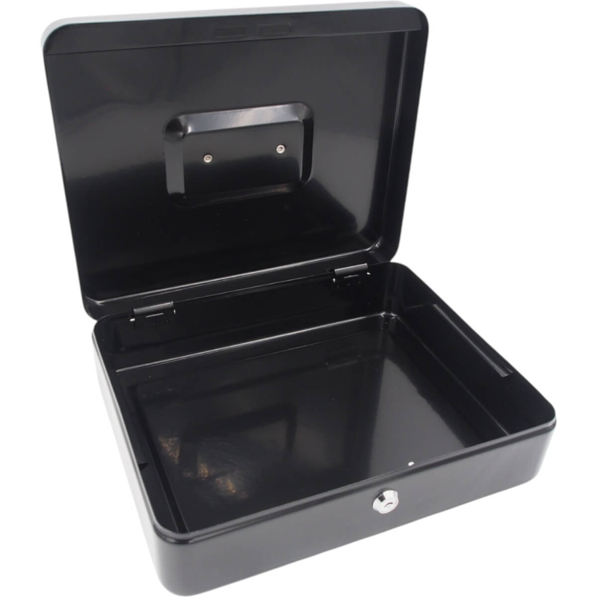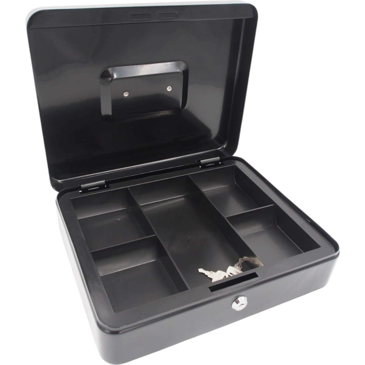 Patvari ir talpi metalinė dėžutė skirta pinigams, monetoms bei smulkiems dokumentams saugoti. Dėžutė užrakinama, komplekte yra 2 raktai. Viduje – išimamas plastikinis skyrius monetoms, o po juo galima laikyti banknotus ar kitus dokumentus. Ant dangčio integruota patogi rankena, leidžianti dėžutę lengvai transportuoti.