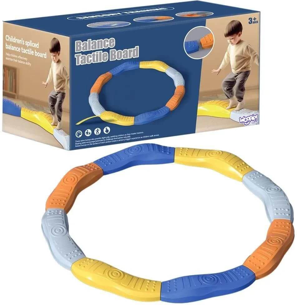Suteikite savo vaikui aktyvaus žaidimo ir tobulėjimo džiaugsmą su Woopie balansuojančiu sensoriniu ratuku! Modulinis, rato formos pusiausvyros takelis su „bangos“ elementais lavina pusiausvyrą, judesių koordinaciją ir sensorinę integraciją. Įvairios reljefinės struktūros švelniai stimuliuoja pėdas, skatina raumenų vystymąsi ir padeda palaikyti taisyklingą laikyseną. Ryškios spalvos kviečia judėti, o galimybė kurti skirtingas trasas (ratas, „gyvatė“, įvairios figūros) garantuoja, kad žaisti niekada nebus nuobodu. Tinka mankštoms ir žaidimams namuose ar lauke ant bet kokio lygaus paviršiaus.