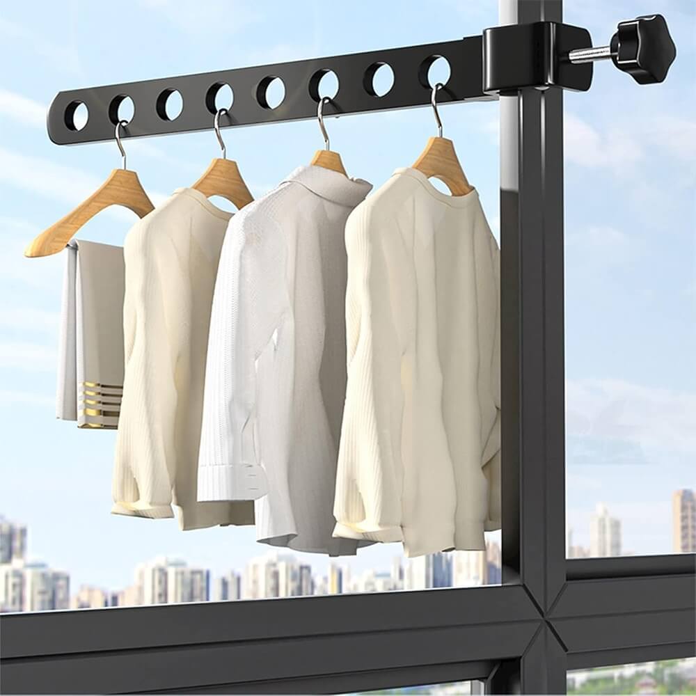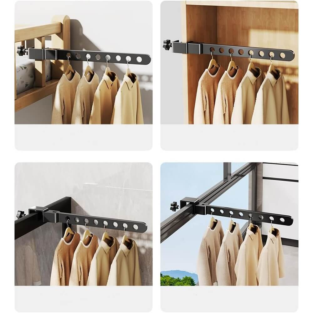 Sutaupykite vietos ir tvarkingai pakabinkite savo drabužius su šiuo daugiafunkciu drabužių laikikliu! Lengvai tvirtinamas prie balkono turėklų, spintelių, durų ar kitų paviršių, šis kabykla idealiai tinka tiek vidaus, tiek lauko naudojimui.