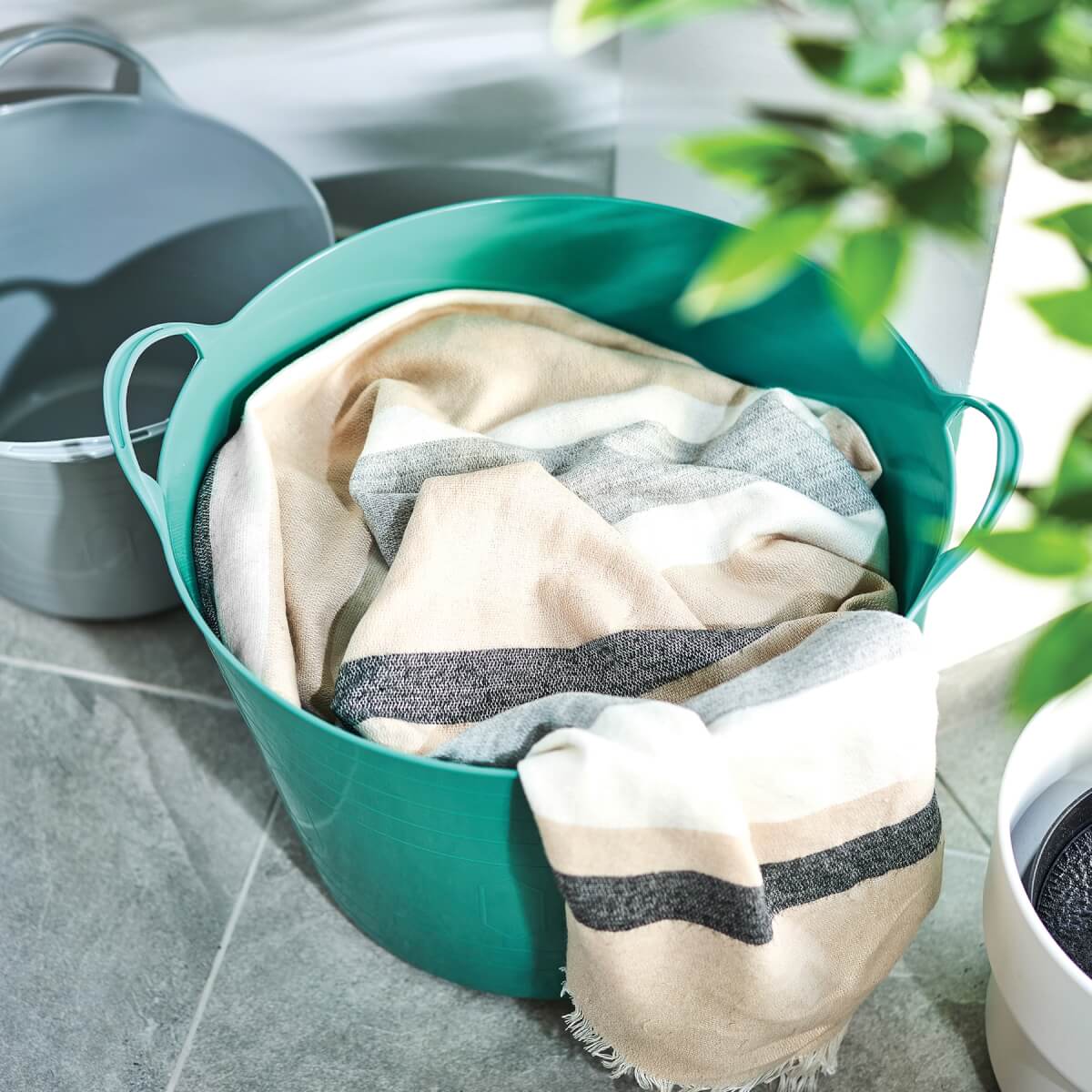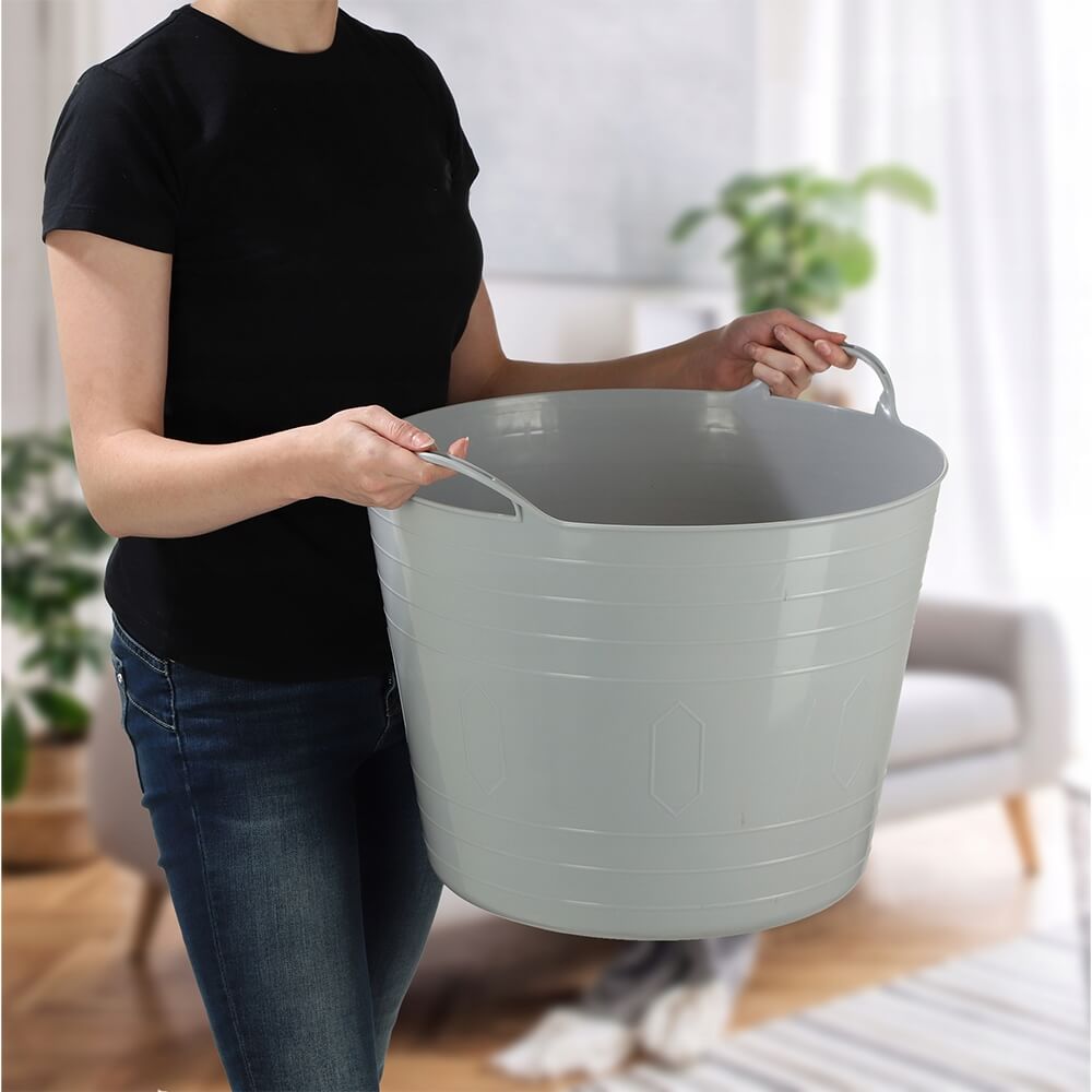 - Praktiškos rankenos šonuose, leidžiančios patogiai nešti krepšelį.
