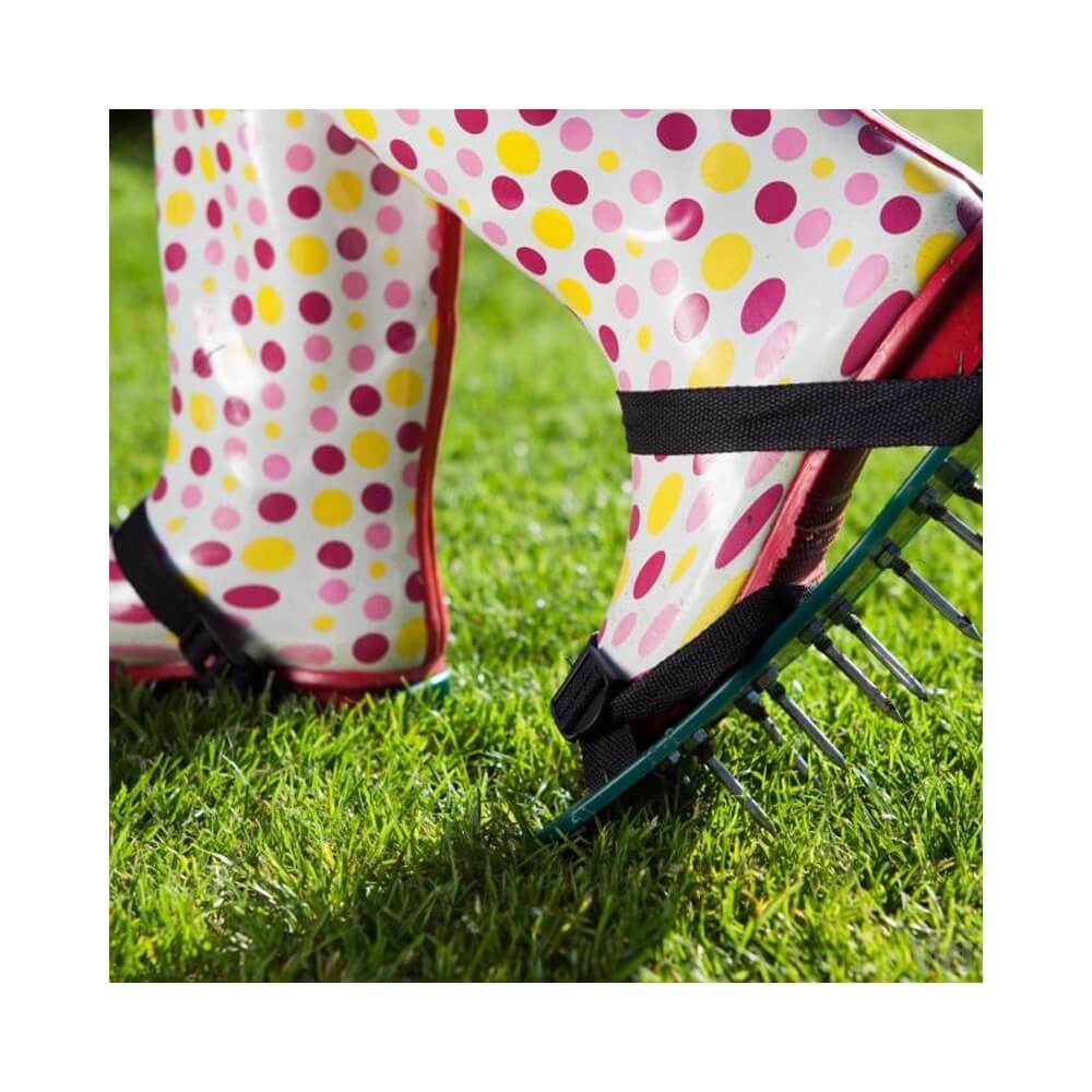 Su vejos aeratoriumi lengva padaryti mažas skylutes dirvoje, kad drėgmė, deguonis ir maistinės medžiagos patektų giliau į žemę. Tai pagreitina žolės augimą ir neleidžia samanoms įsitvirtinti. Kiekvienas batas su 13 plieninių vinių ir 4 tvirtinimo dirželiais.