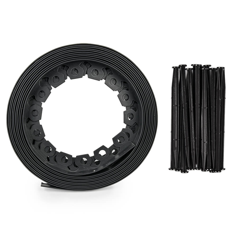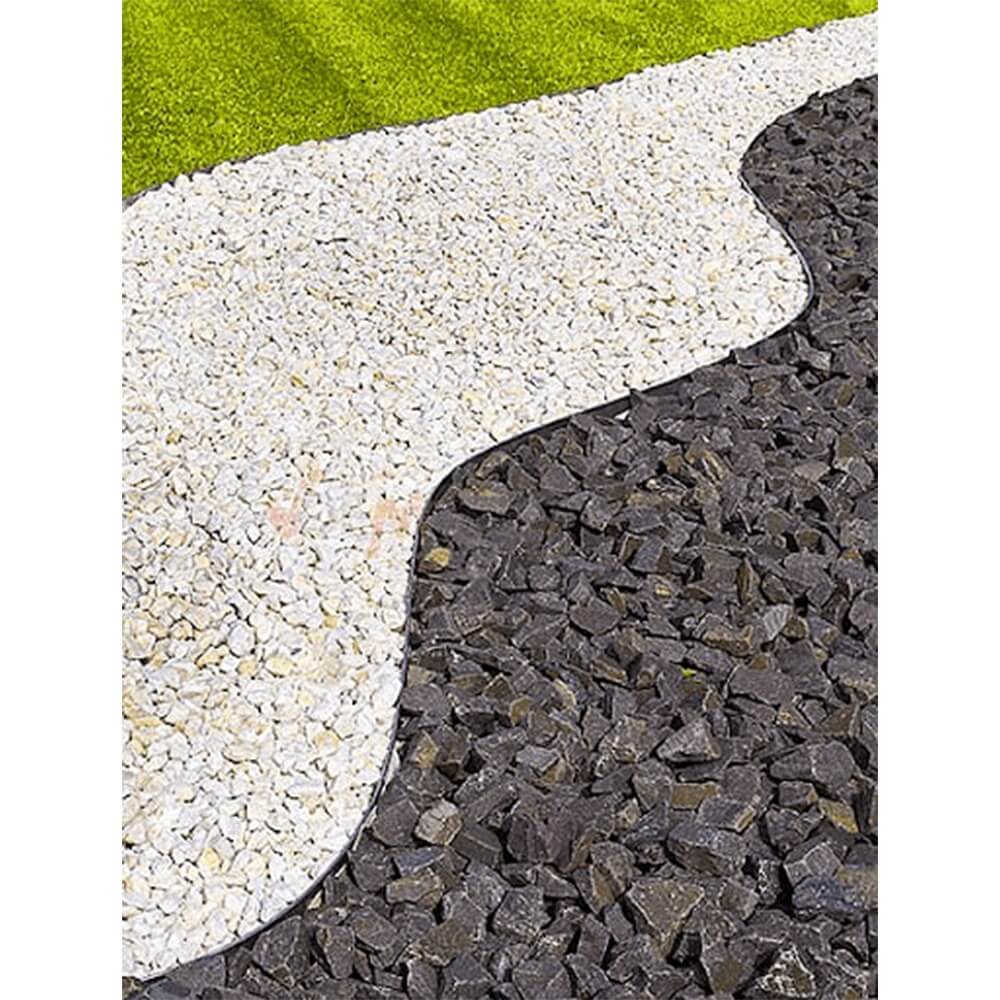 - Pagaminta iš lanksčios ir atsparios medžiagos. Jie neturi sutvirtinimo sijų, todėl galima patogiai formuoti arkas ar eskizus. Naudojami sodo dizaine vejai nuo takelio atskirti, kultivuojamai sodo daliai, gėlynams, žievės ar smėlio grindiniui. Prie žemės tvirtinama plastikiniais inkarais.
