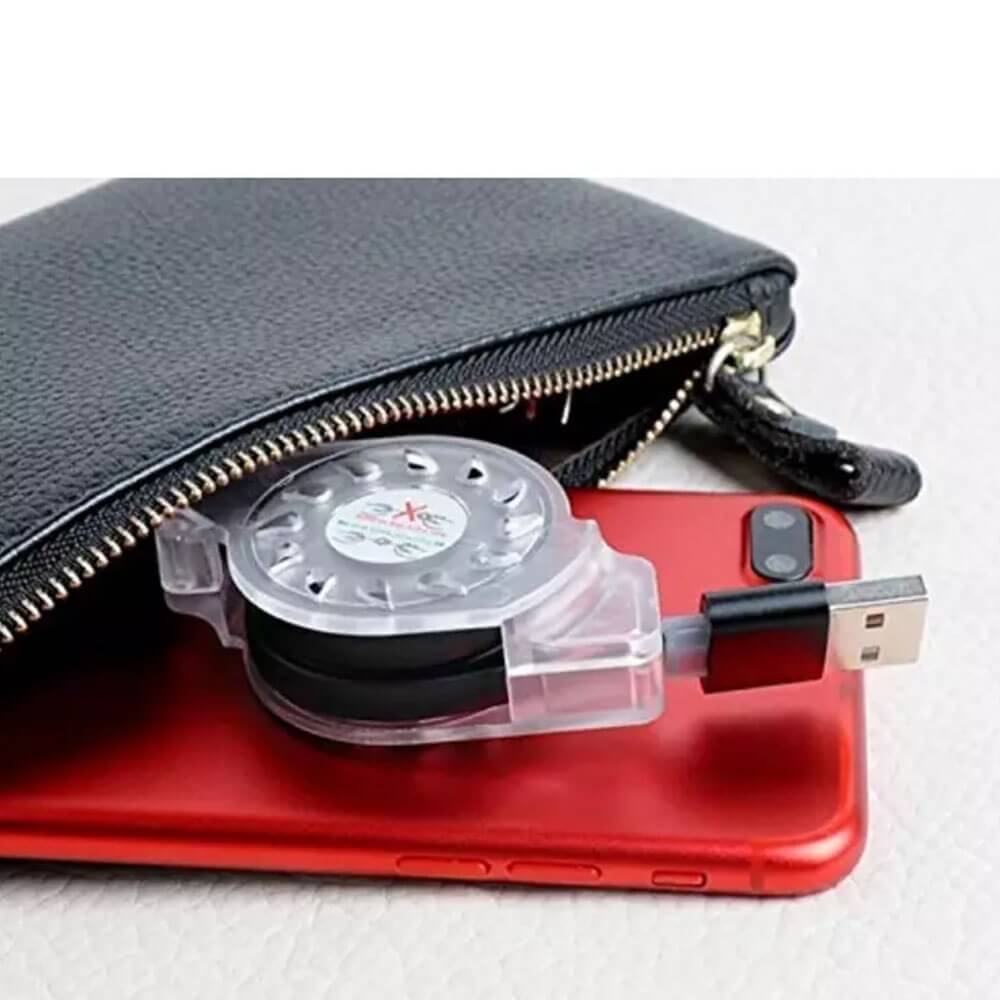 - Ištraukiamas kelioninis USB laidas su trimis skirtingomis įkrovimo galvutėmis.