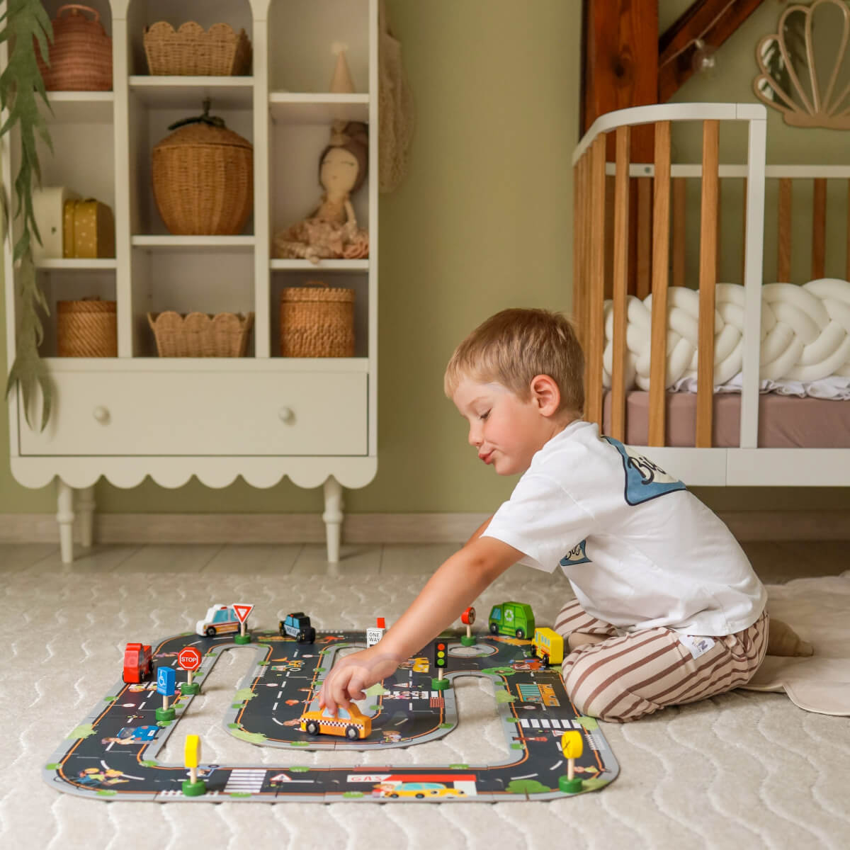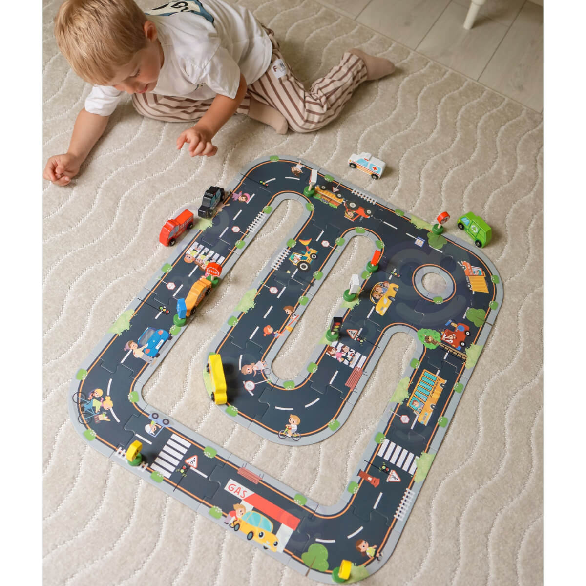 Edukacinė dėlionė „Miesto keliai“ WOOPIE GREEN – puiki dovana vaikui, kuris mėgsta automobilius, statybas ir miesto nuotykius. Užsakykite ir padovanokite smagų mokymąsi kiekvieną dieną!