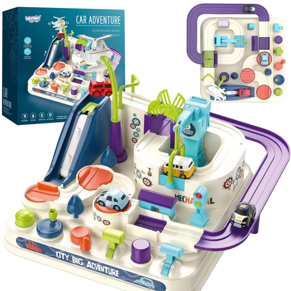 - Žaisti smagu ir kartu: 3 automobiliai leidžia varžytis ar bendradarbiauti.