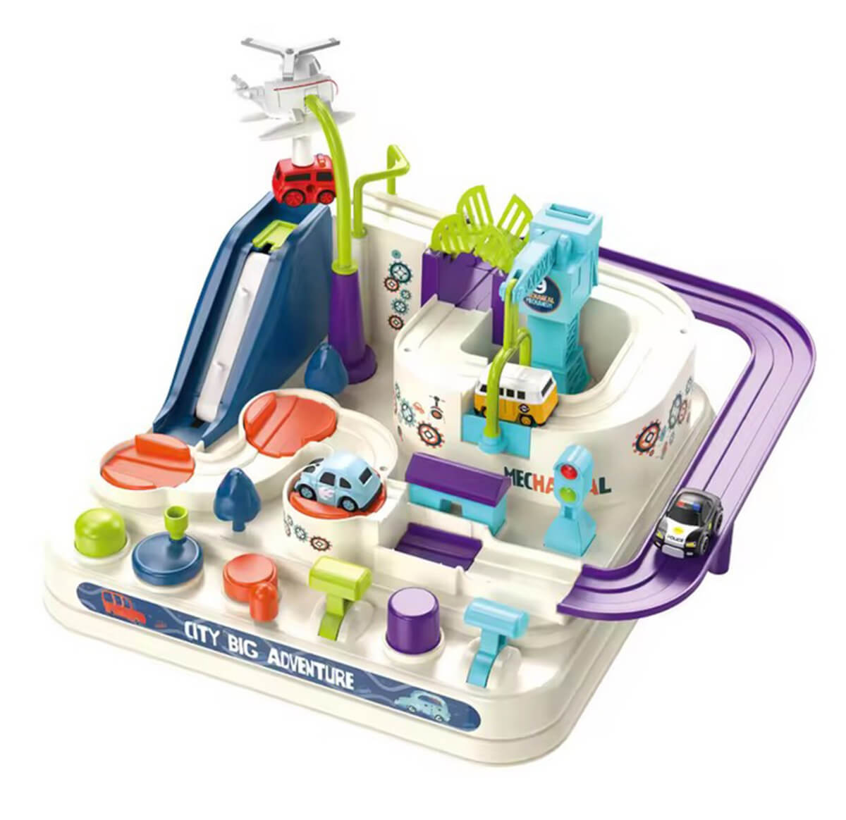 Interaktyvus kliūčių ruožas „Miesto transporto priemonės“ – veiksmo pilna automobilių trasa be baterijų, kuri lavina vaikų smulkiąją motoriką, susikaupimą ir loginį mąstymą. Tai daugiau nei žaislas: mažieji tampa vairuotojais, mygtukais ir rankenėlėmis valdo dinamiškus elementus, įveikia kliūtis ir kuria savo maršrutus. Magneto dėka automobiliai „skrenda ore“, o kiekvienas sprendimas trasoje tampa įdomiu iššūkiu.