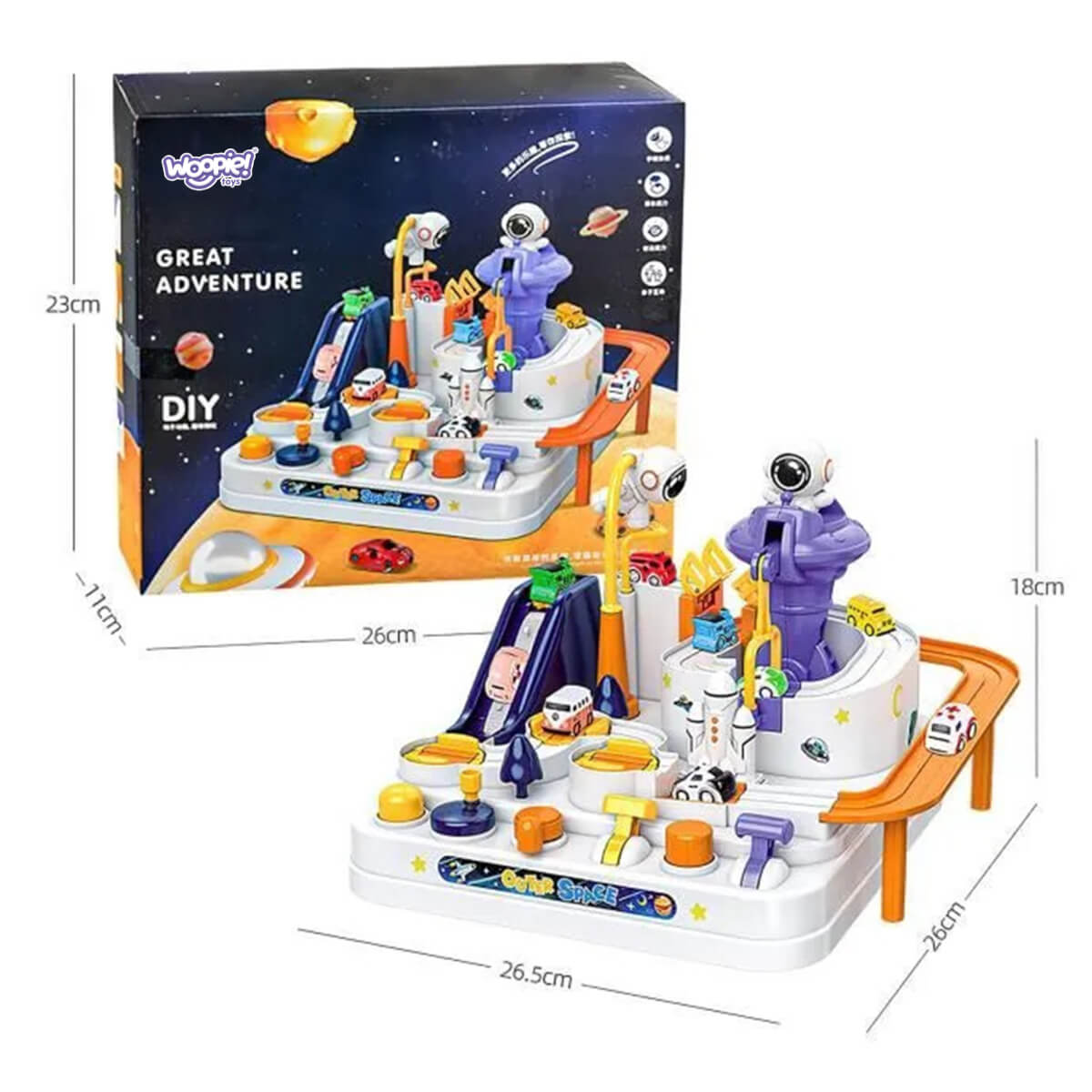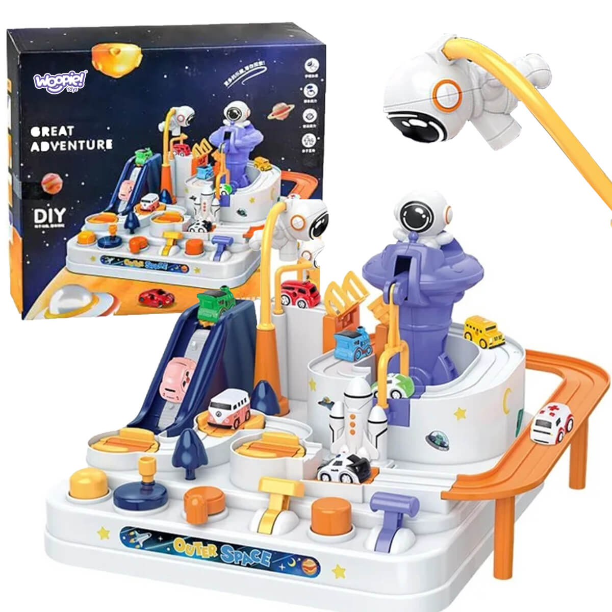 Nepaprasta dovana mažiesiems tyrinėtojams! Ši interaktyvi trasa kviečia vaikus „vairuoti“, įveikti kliūtis ir kurti savo kosmines misijas. Dėl išradingo dizaino ir valdymo mygtukais bei rankenėlėmis žaidimas tampa dinamiškas, kupinas įspūdžių ir iššūkių. Komplekte esantys trys automobiliai juda „ore“ dėl magneto, o vaikai gali lenktyniauti arba laisvai tyrinėti skirtingus maršrutus.