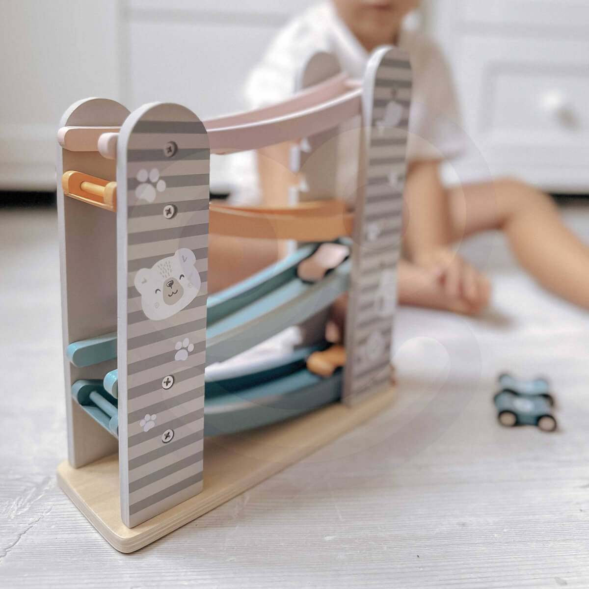 Trumpai: tai saugi, estetiška ir edukacinė medinė lenktynių trasa vaikams – žaidimas, kuris džiugina ir augina.