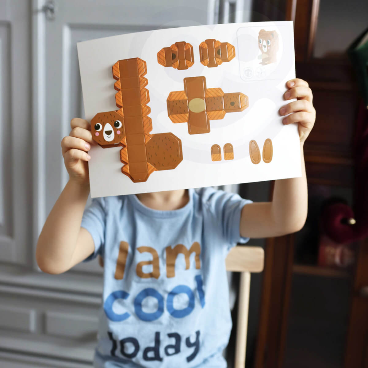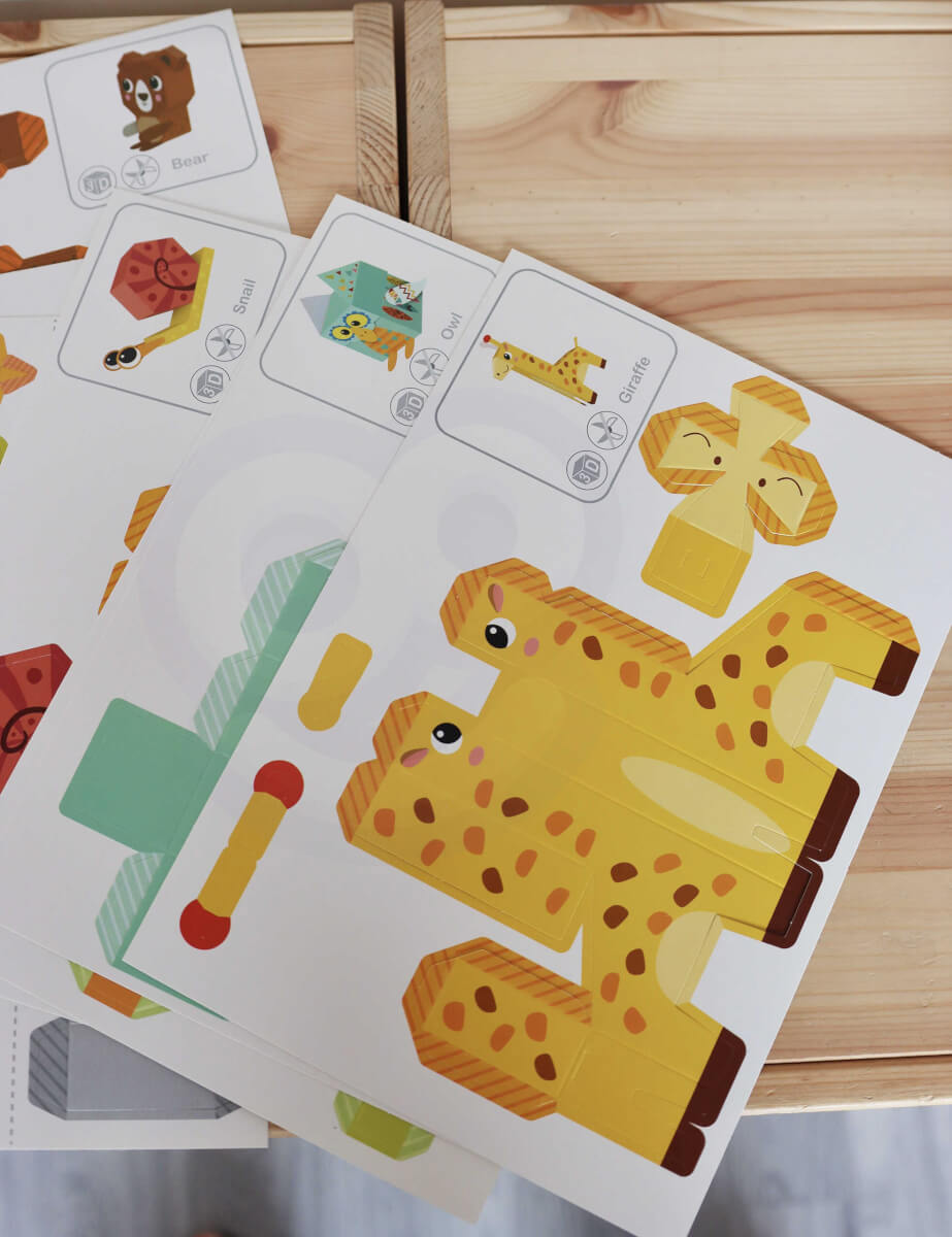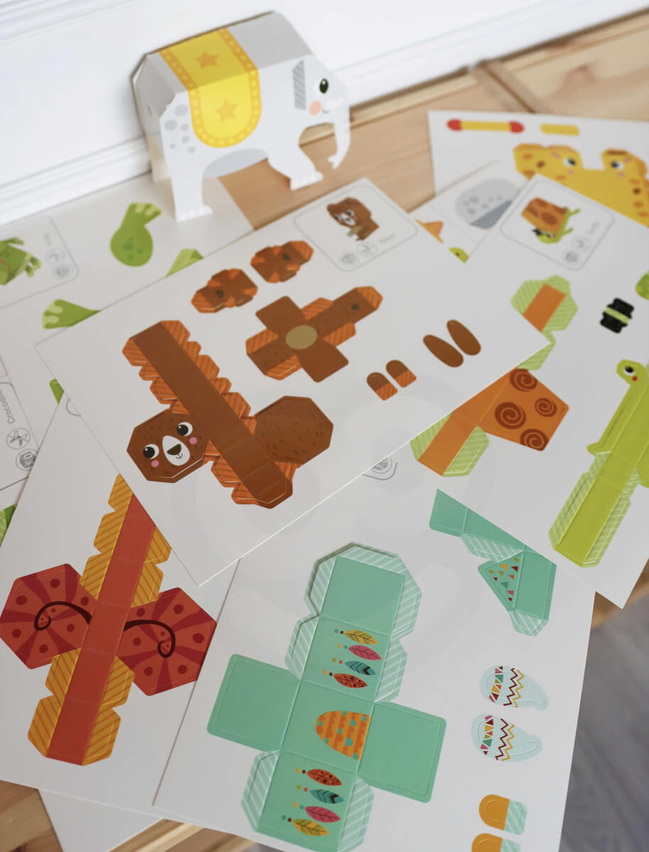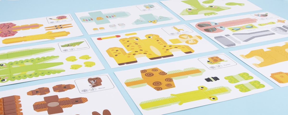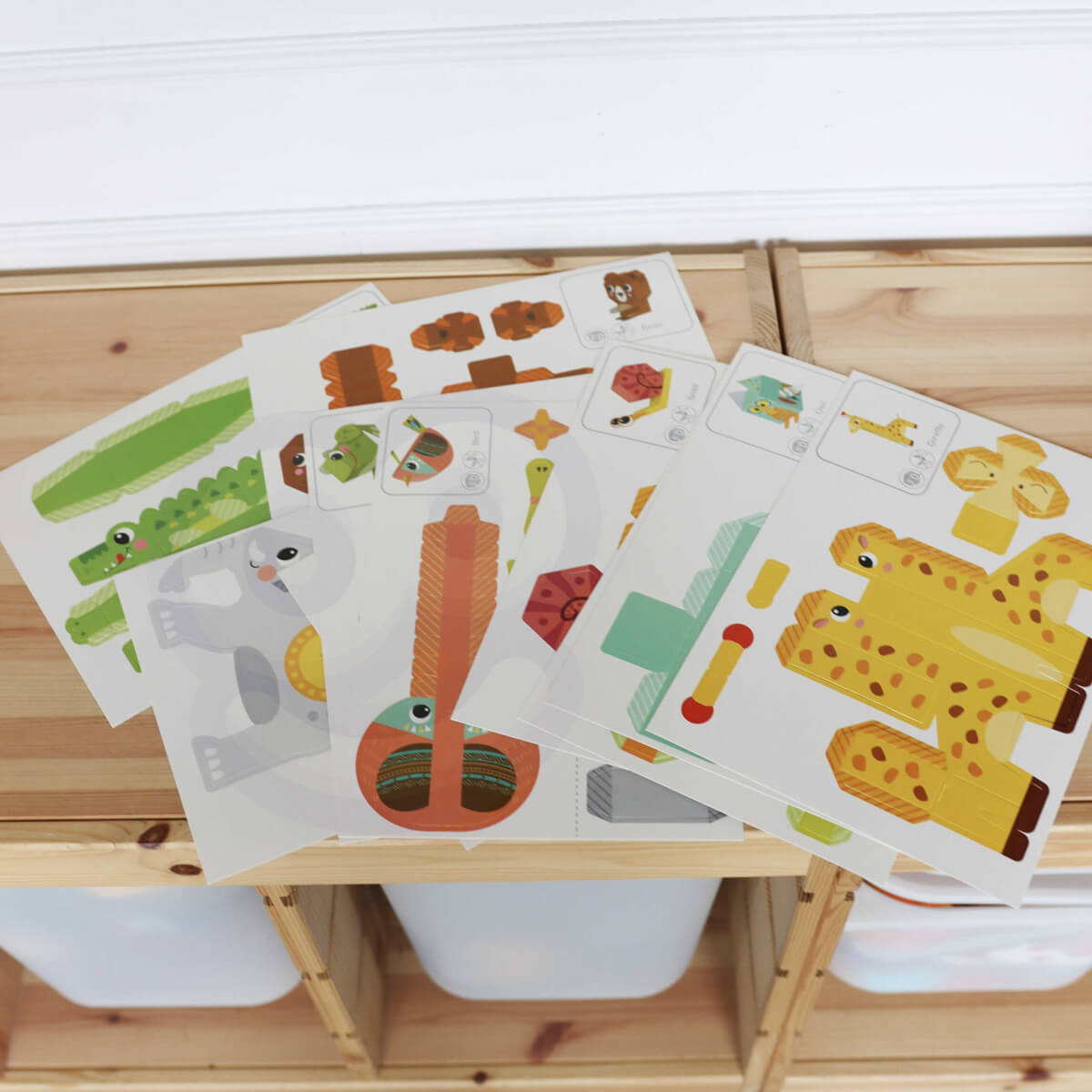 • Rinkinys: 10 3D popierinių gyvūnų (5 kortelės x 2 gyvūnai)