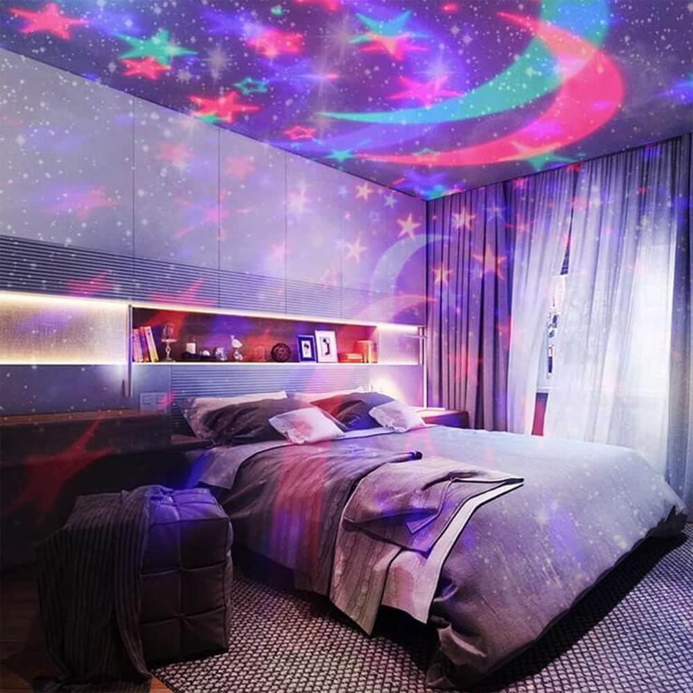 • Projektorius rodo žvaigždes ir kosminius vaizdus ant sienų ir lubų, sukuriant unikalią ir magišką atmosferą.