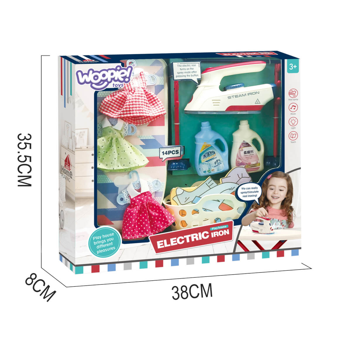 Rinkitės WOOPIE – saugus, tikroviškas ir lavinantis žaidimas kiekvienai dienai! Keywords: lyginimo rinkinys vaikams, žaislinis lygintuvas, lyginimo lenta vaikams, namų ruošos žaislai, vaidmeninis žaidimas, šviesos ir garsai, mergaitėms ir berniukams, 3+.