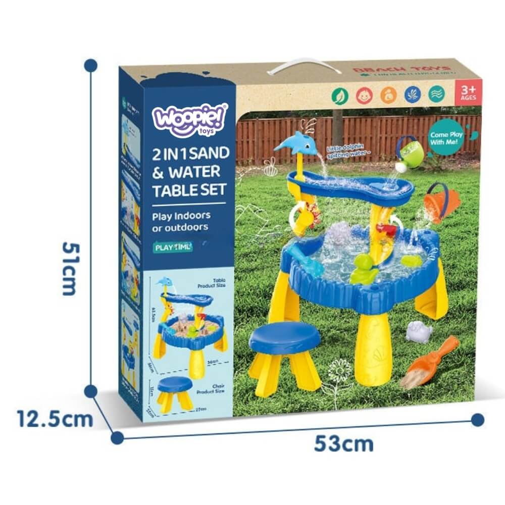 2 in 1 vandens ir smėlio žaidimų stalas – kūrybiškas žaidimas viduje ir lauke. Kompaktiškas, lengvai surenkamas ir pilnas interaktyvių atrakcijų, šis rinkinys suteiks vaikams valandų valandas jutiminių ir lavinamųjų pramogų su vandeniu ir smėliu.