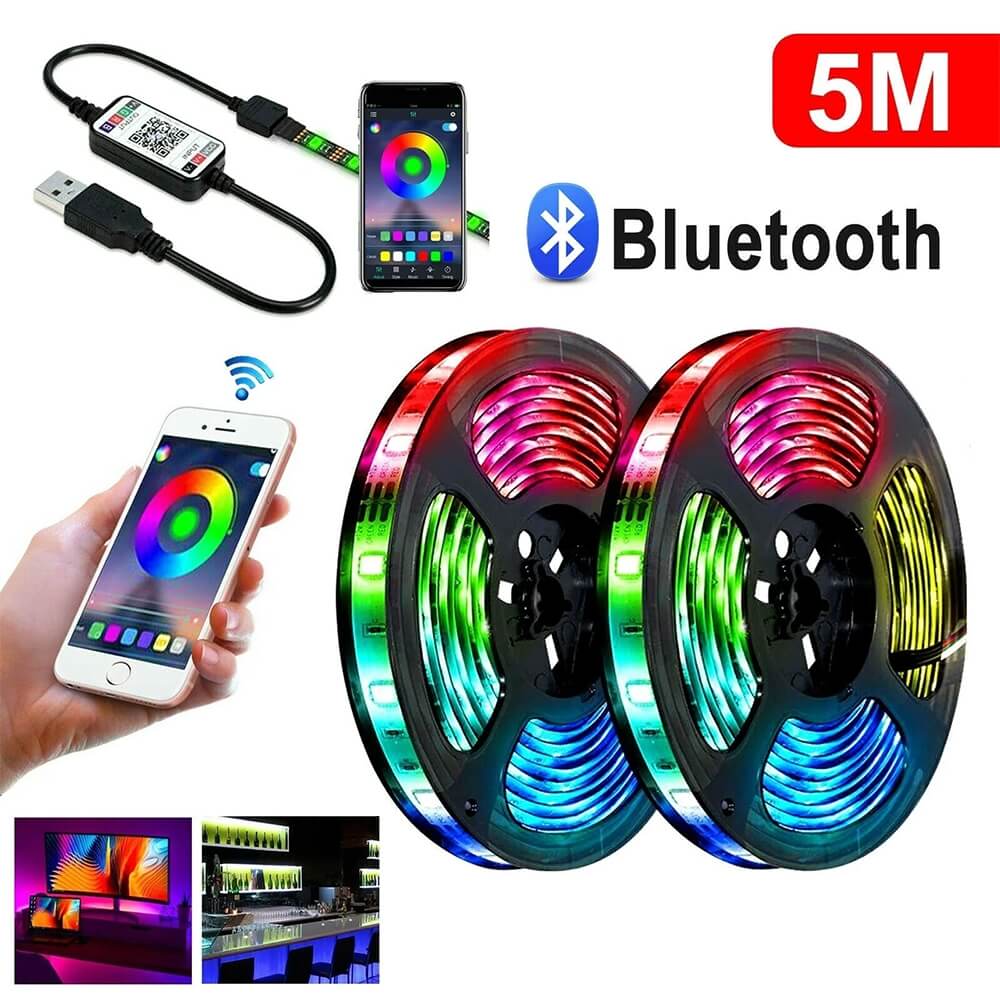 LED RGB juosta, kurią galima valdyti per telefoną su integruotais RGB LED diodais, kuriuos galima kontroliuoti naudojant specialią programėlę per Bluetooth ryšį su savo telefono arba išmaniojo įrenginio pagalba. Ši technologija leidžia jums valdyti spalvą, intensyvumą ir dažnį tiesiai iš savo telefono, suteikiant jums plačias galimybes pritaikyti apšvietimą pagal savo nuotaiką ar aplinkos poreikius.