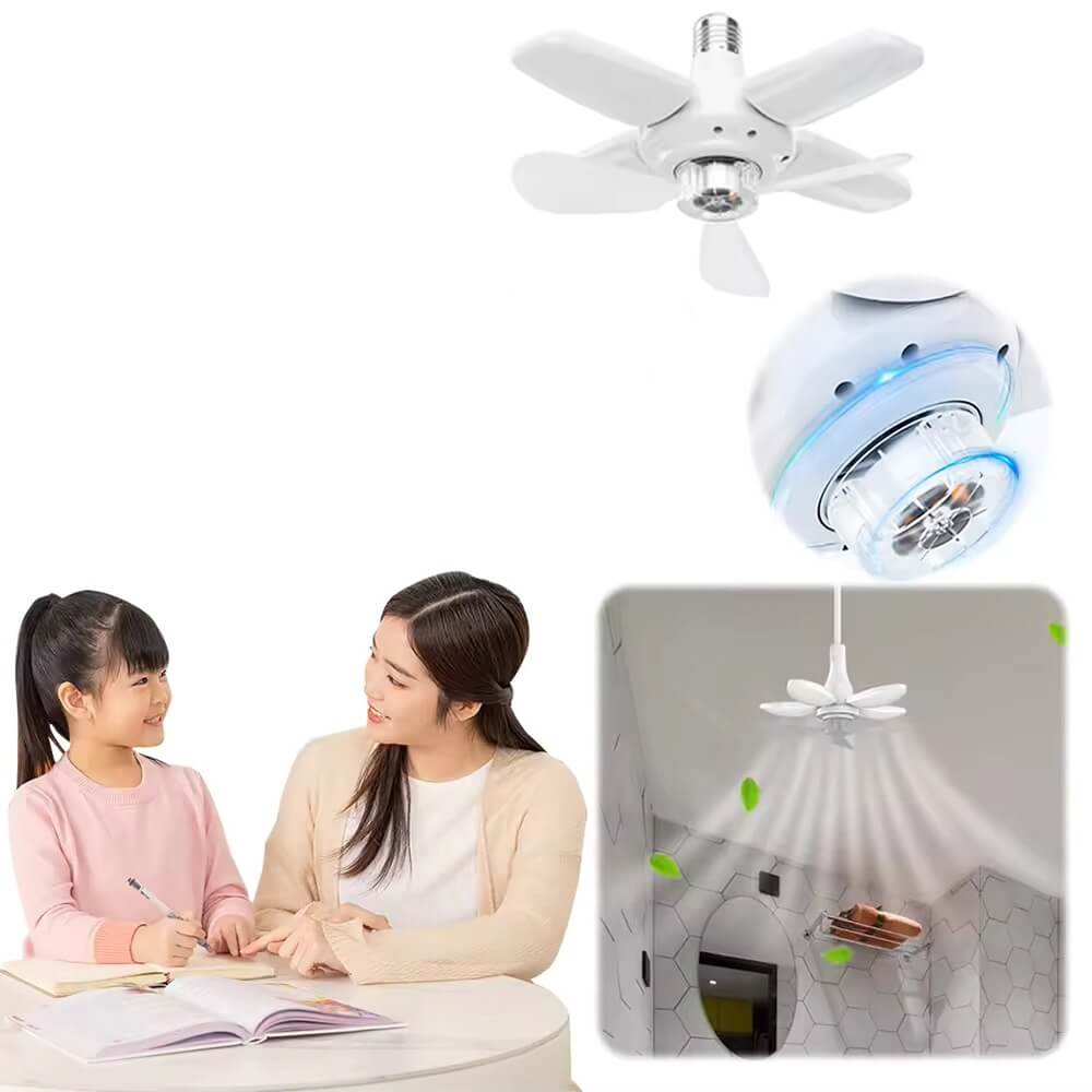 Modernus LED lubų šviestuvas su integruotu ventiliatoriumi – puikus pasirinkimas tiems, kurie nori viename įrenginyje turėti ir šviesą, ir vėsinimą. Šviestuvas turi 4 lankstomas LED plokšteles bei papildomus ventiliatoriaus sparnelius, kurie užtikrina oro cirkuliaciją patalpoje. Komplekte esantis nuotolinio valdymo pultelis leidžia patogiai reguliuoti šviesos režimus bei ventiliatoriaus veikimą.