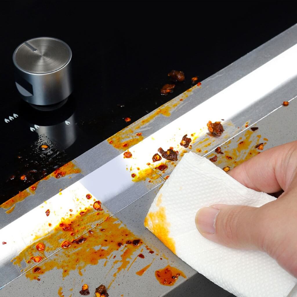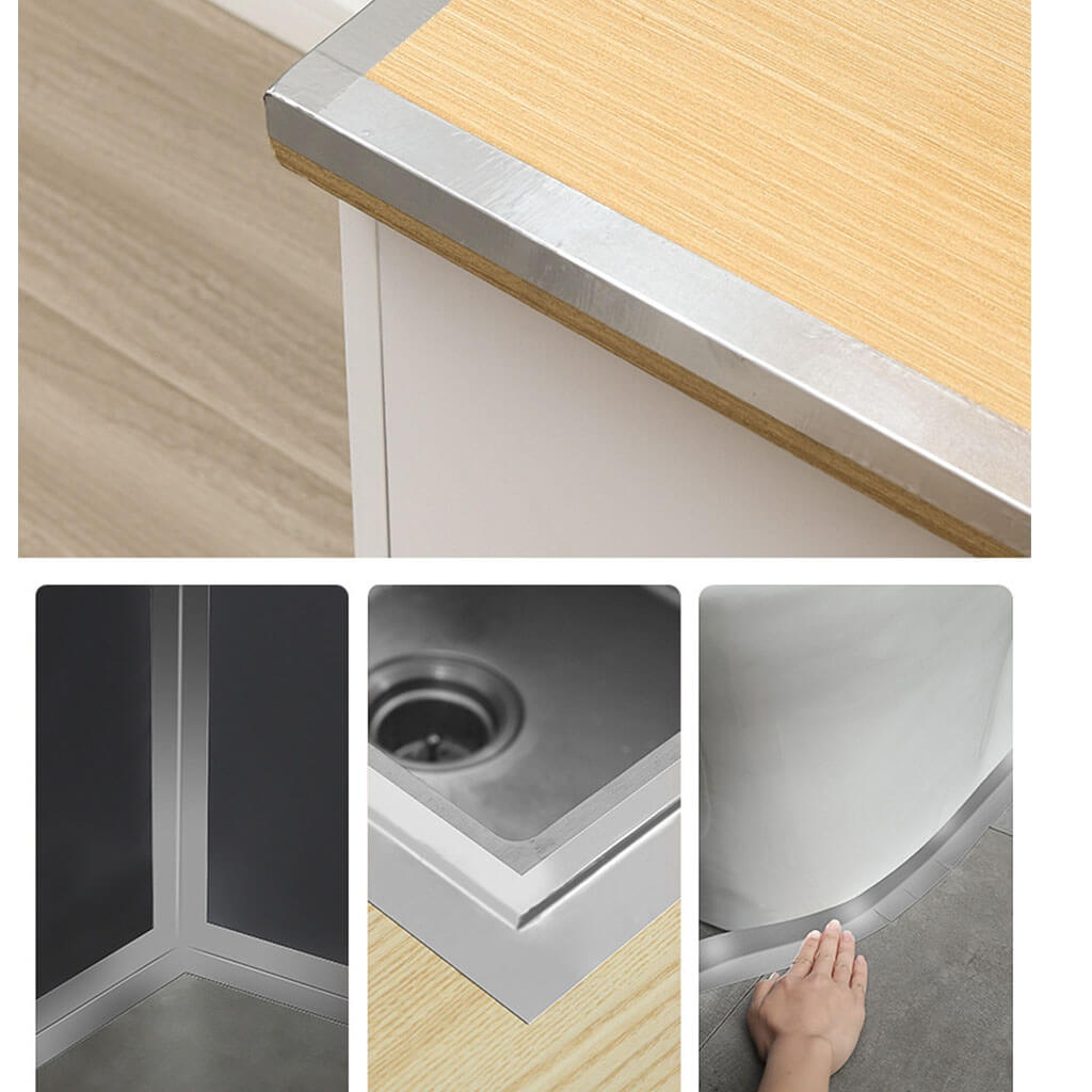 Sandarinimo juosta virtuvės ir vonios kraštams. Puikiai užsandarina visus tarpus, susidariusius sumontavus virykles, vandens kriaukles ir kitus prietaisus. Juosta yra atspari karščiui ir ugniai. Labai lengvas ir greitas pritaikymas, tereikia klijuoti tarpą juostele.