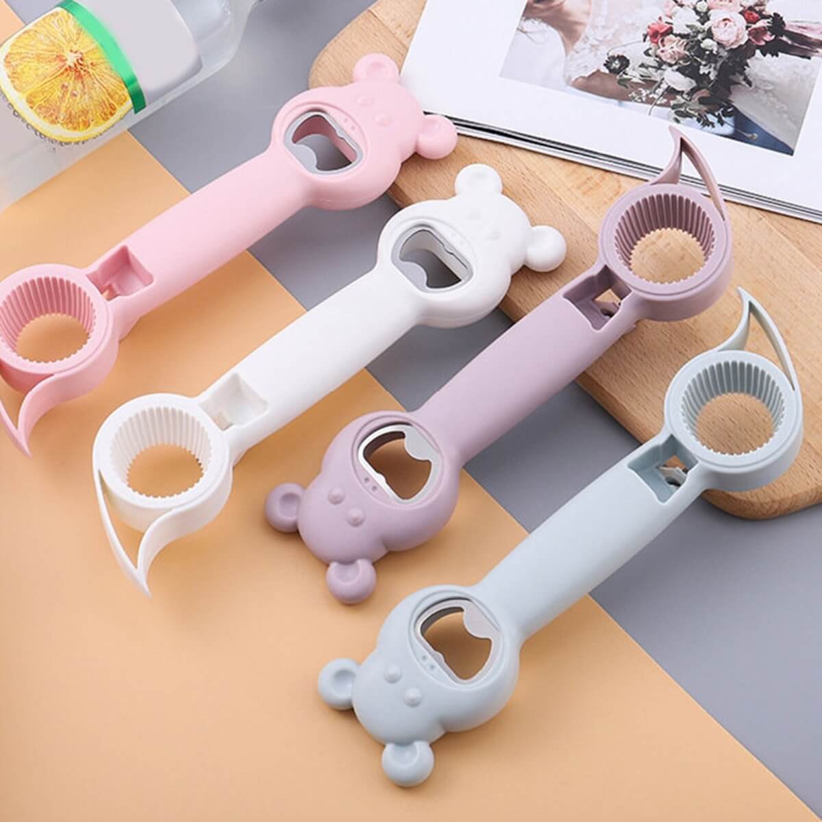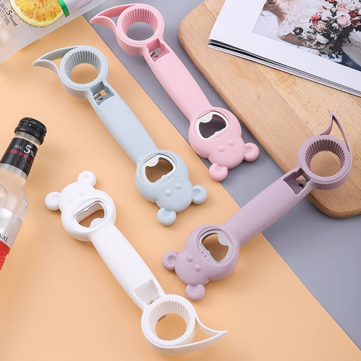 Daugiafunkcis butelių atidarytuvas „Keturi viename“, neslystantis stiklainių atidarytuvas virtuvei