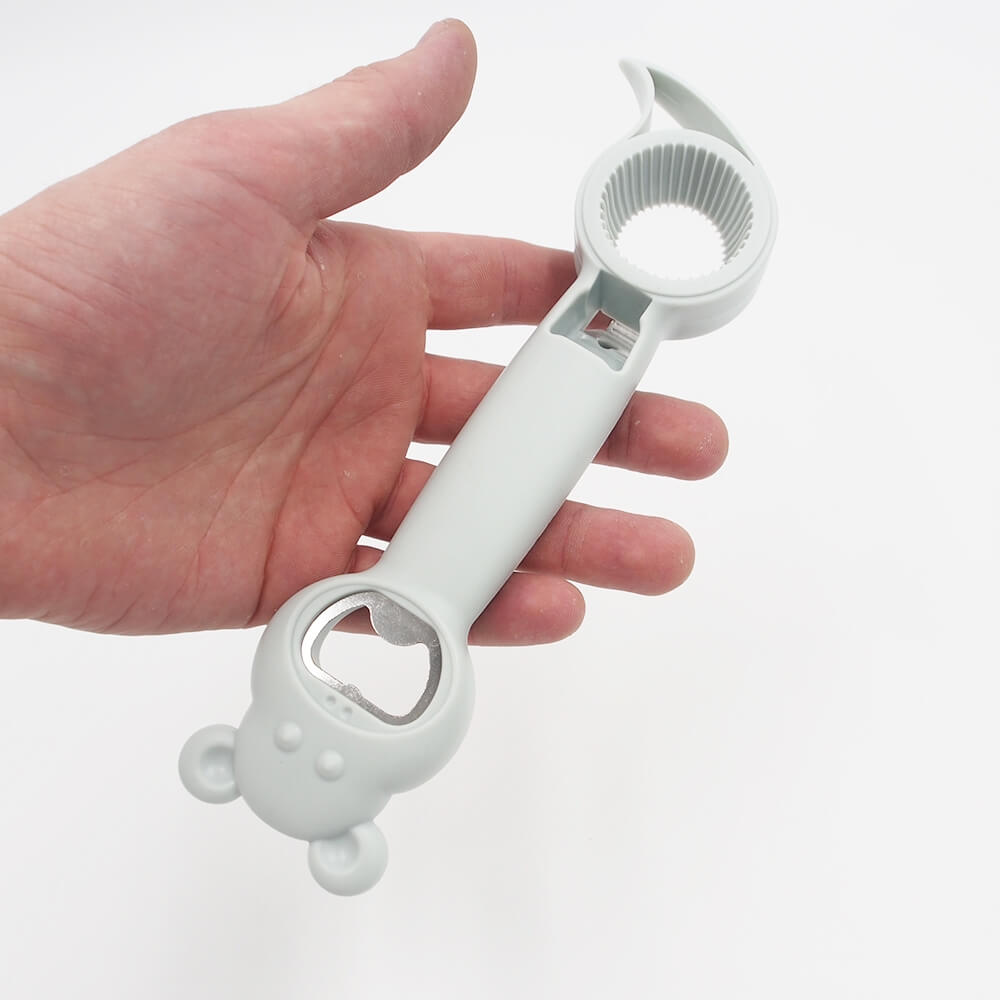 • Šis butelių atidarytuvas su guma, kuris yra minkštas ir patogus suimti.