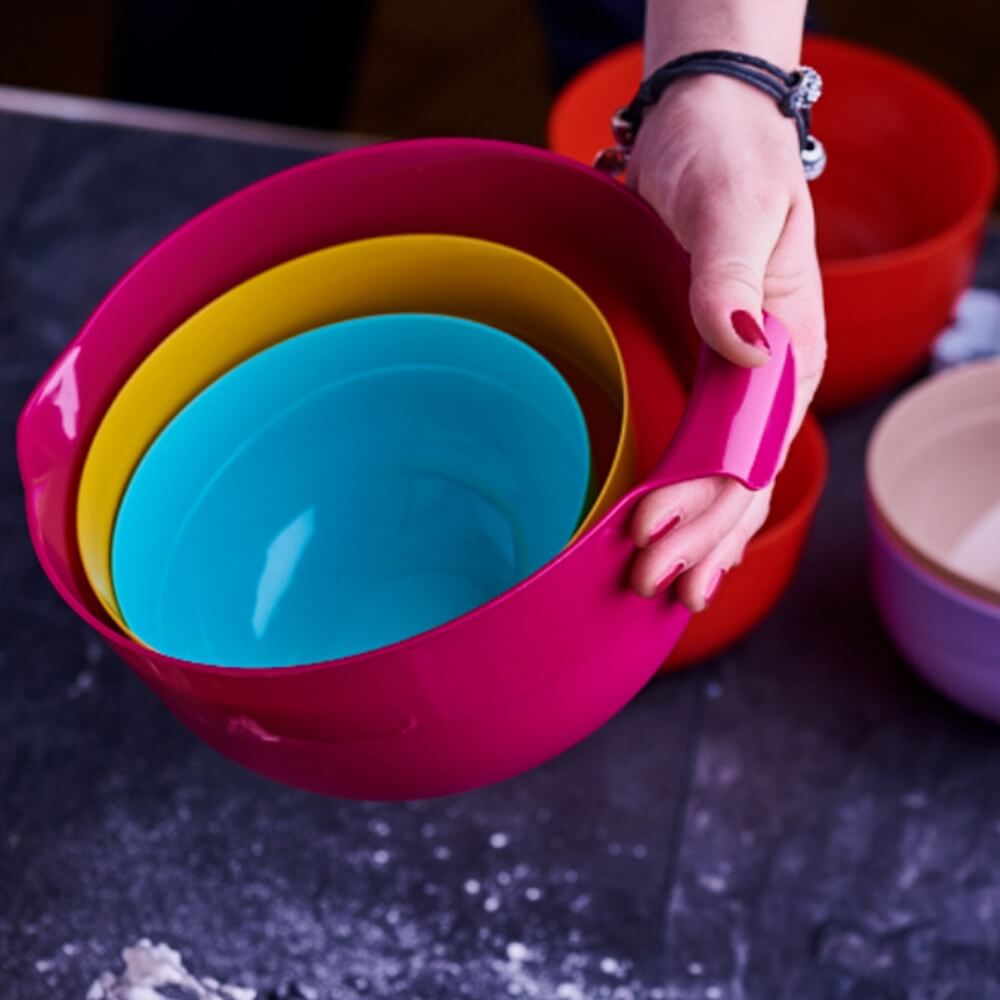 Rinkinį sudaro 5 dažnai naudojami inda skirti kasdienėms maisto ruošimo užduotims. Išsispauskite sulčių ryte ir suplakite omletą, išsivirkite makaronų pietums ir pagaminkite salotų vakarienei – visa tai pagaminsite su maišymo dubenėlių rinkiniu. Rinkinį sudaro: