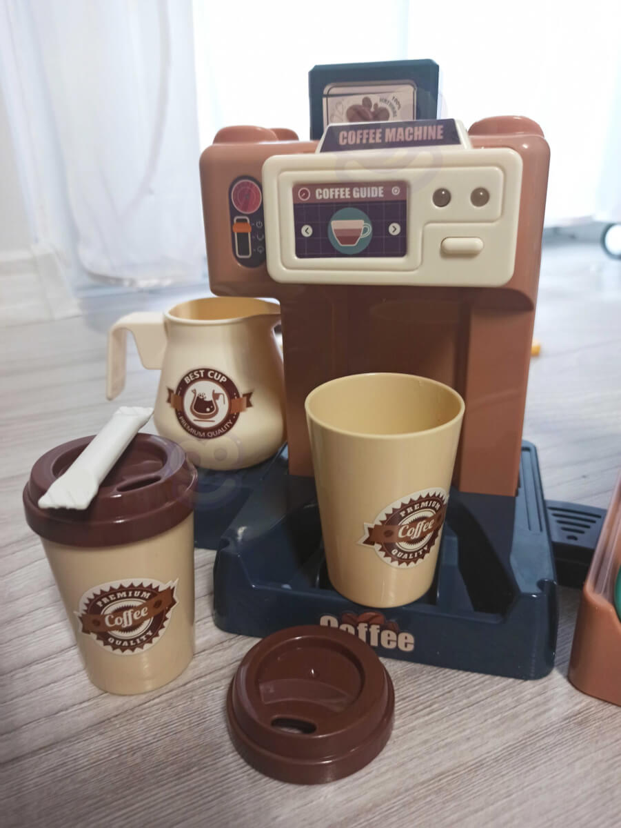 Leiskite mažiesiems tapti baristais! Šis WOOPIE kavos aparato rinkinys su kavinės stovu ir saldumynų vitrina sukurtas vaidmenų žaidimams, kurie lavina kūrybiškumą, smulkiąją motoriką ir socialinius įgūdžius. Kavos aparatas turi tikro vandens srauto funkciją, o realistiški garsai ir šviesos suteikia dar daugiau įspūdžių.