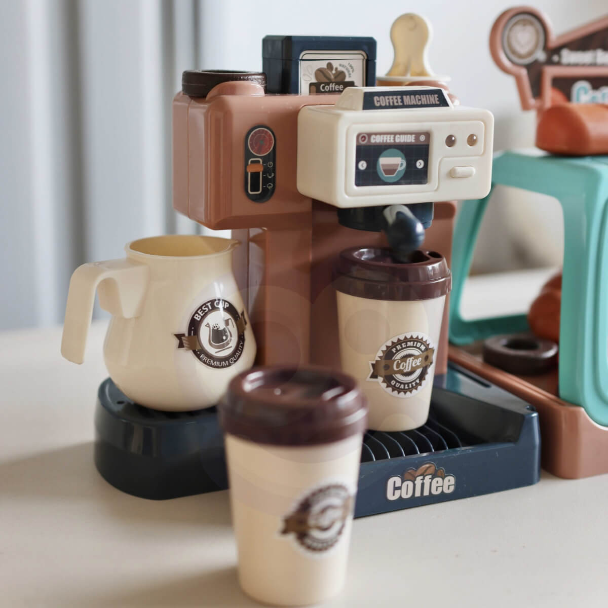 WOOPIE vaikiškas kavos aparatas su vandens srautu, garsais ir šviesomis – 40 dalių kavinės rinkinys