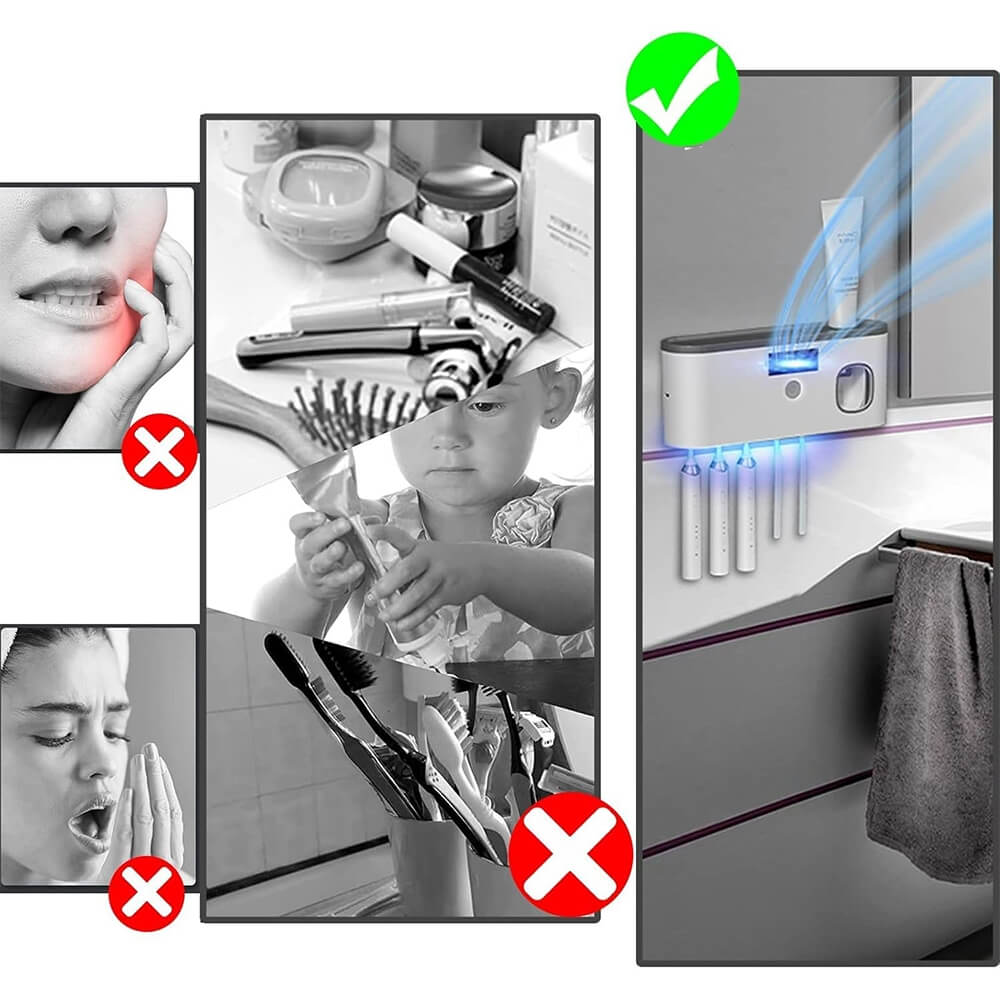 - Dizainas: Modernus ir higieniškas laikiklis, skirtas dantų šepetėliams.