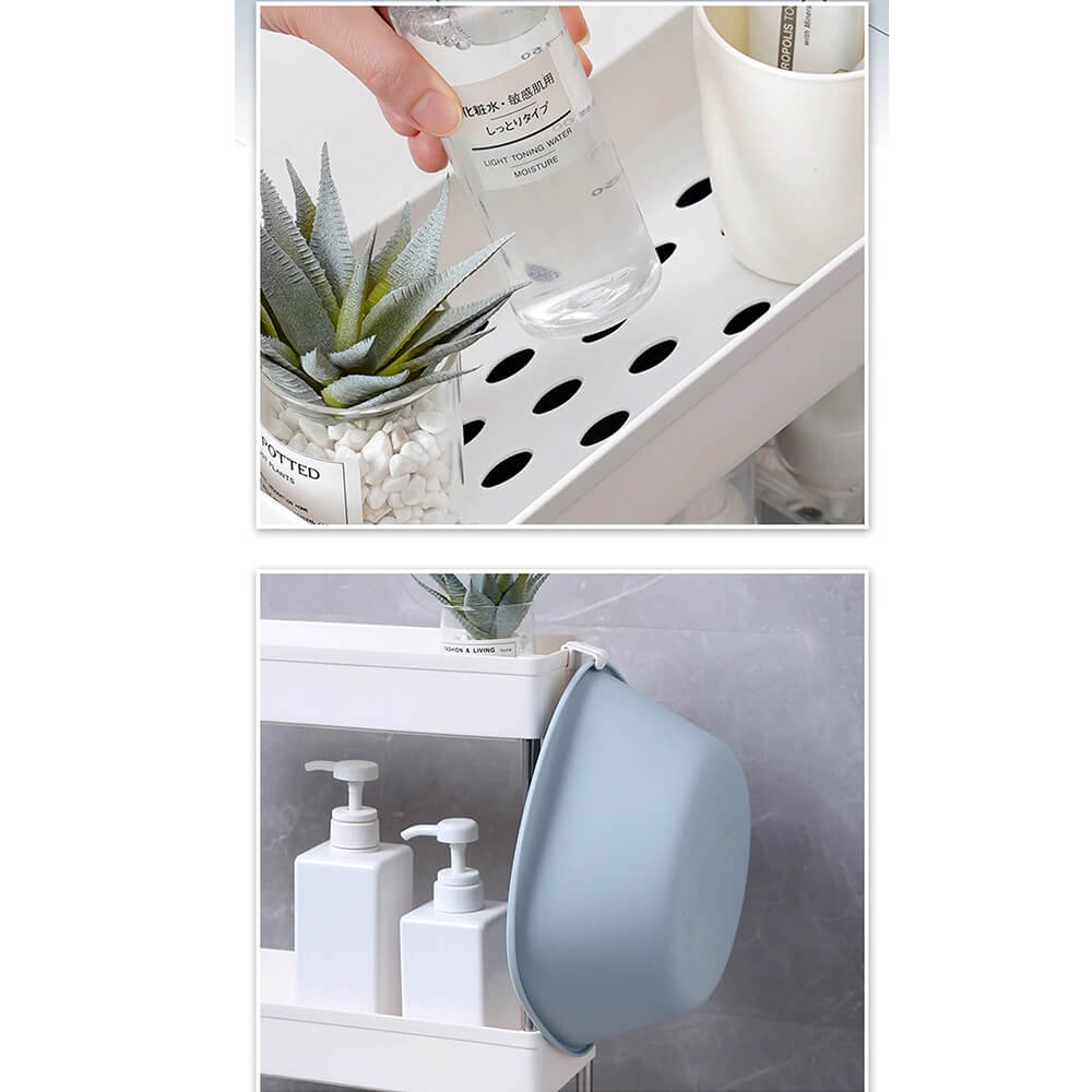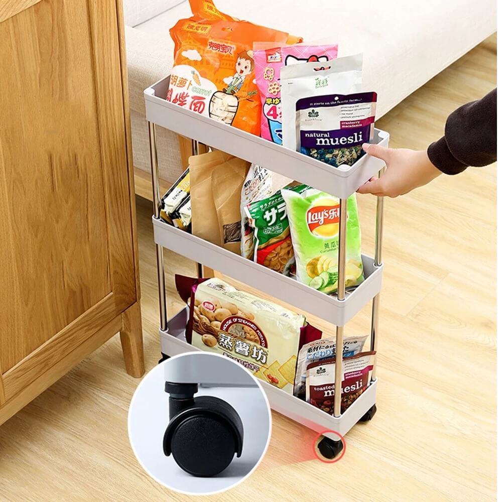 Lengva, stabili ir itin praktiška mobili spintelė–lentyna ant ratukų, puikiai tinkanti virtuvei, vonios kambariui ar sandėliukui. Siauras dizainas leidžia išnaudoti mažas erdves, o 3 talpios lentynos padeda patogiai susidėti dažniausiai naudojamus daiktus. Tvirta PP plastiko konstrukcija užtikrina stabilumą net ir pilnai užpildžius.