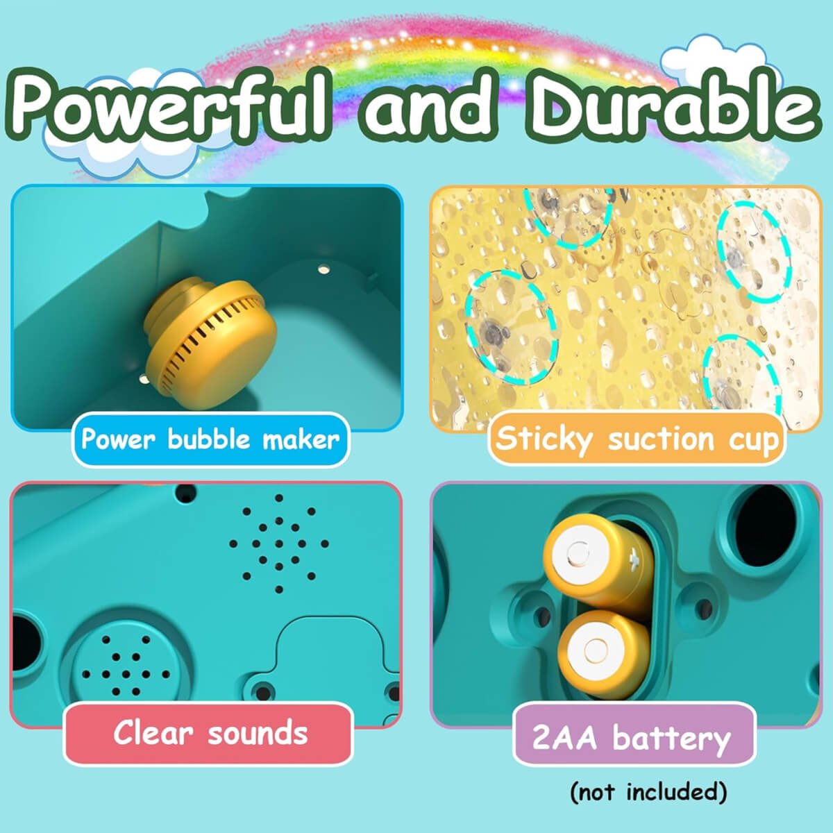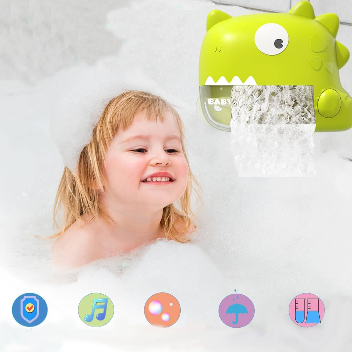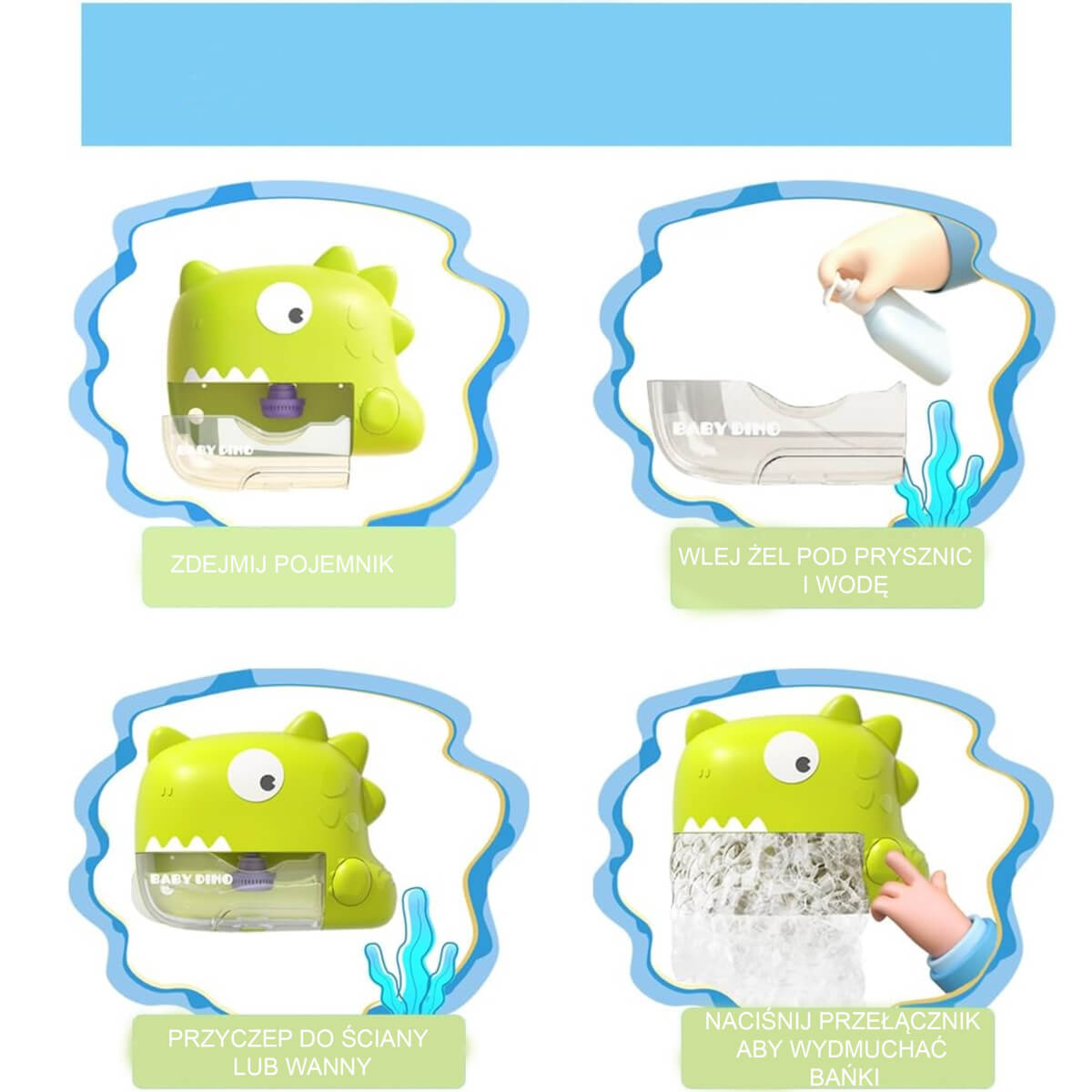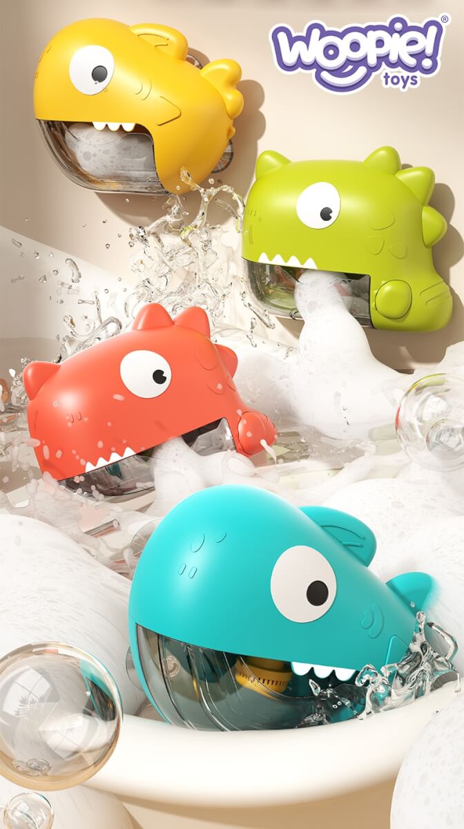 Paverskite maudynes į linksmą burbulų šou! WOOPIE dinozauro formos muilo burbulų aparatas turi 250 ml talpą ir galingą variklį, galintį automatiškai sukurti virš 5000 burbulų – vonia prisipildys putomis akimirksniu. Pagamintas iš aukštos kokybės ABS plastiko, atsparus vandeniui (IP6) ir su muzikos funkcija, todėl puikiai tinka tiek vonioje, tiek žaidimams lauke. Patobulinti 4 itin lipnūs siurbtukai tvirtai laikosi ant lygių paviršių ir nekrenta, o dinamiška muzika ir burbuliukai įkvepia vaikus smagiai praleisti laiką. Aparatą galima bet kada išjungti.