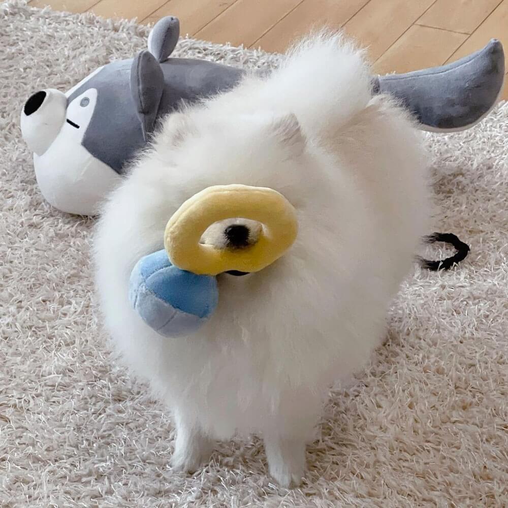 Šis mielas deimantų žiedų rinkinio interaktyvus žaislas šuniui yra apie 15*15*13cm, puikiai tinka visų dydžių naminiams gyvūnėliams žaisti.